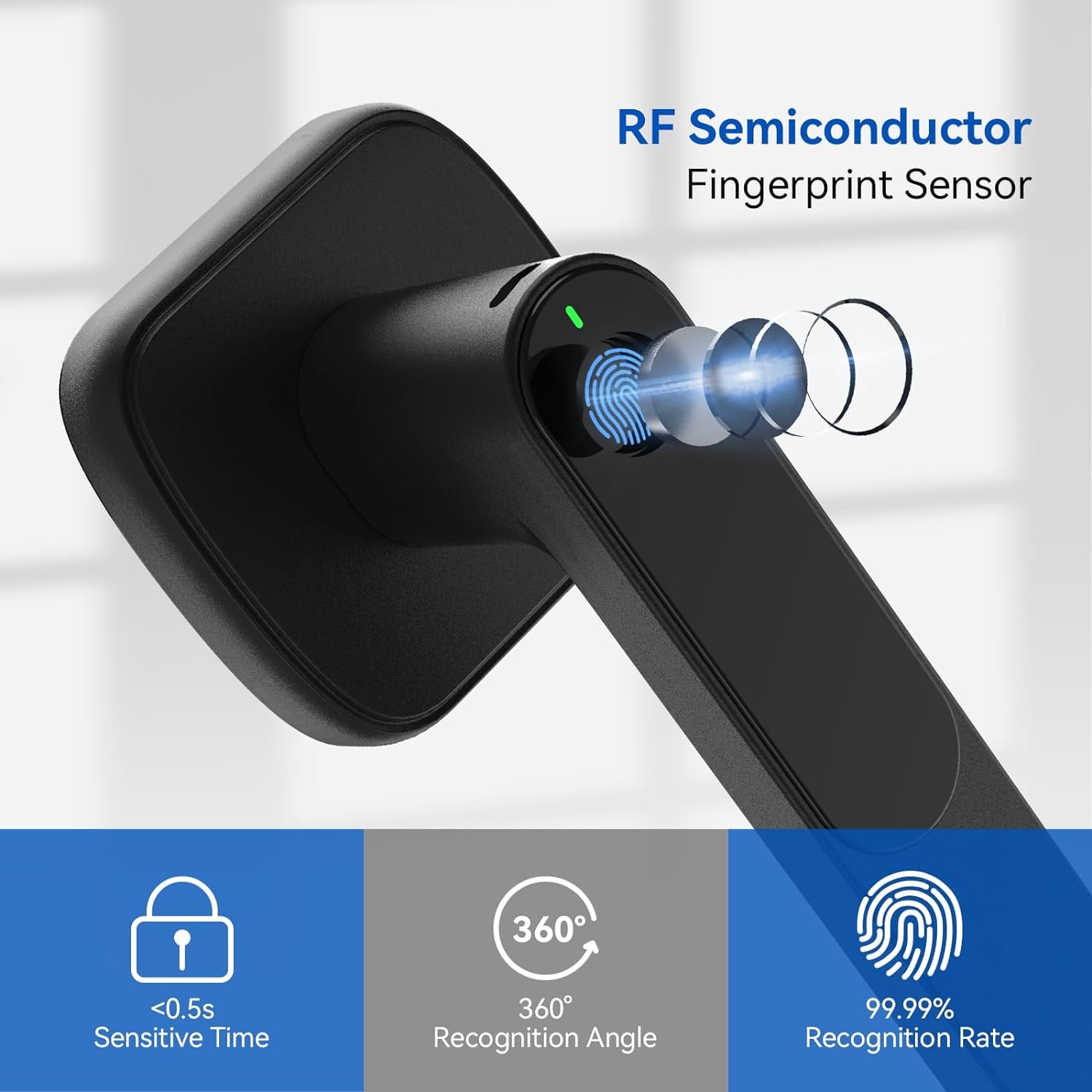 【Powerful chip】Our biometric door lock uses a Cypress chip,which has a huge storage capacity and more powerful fingerprint algorithms.