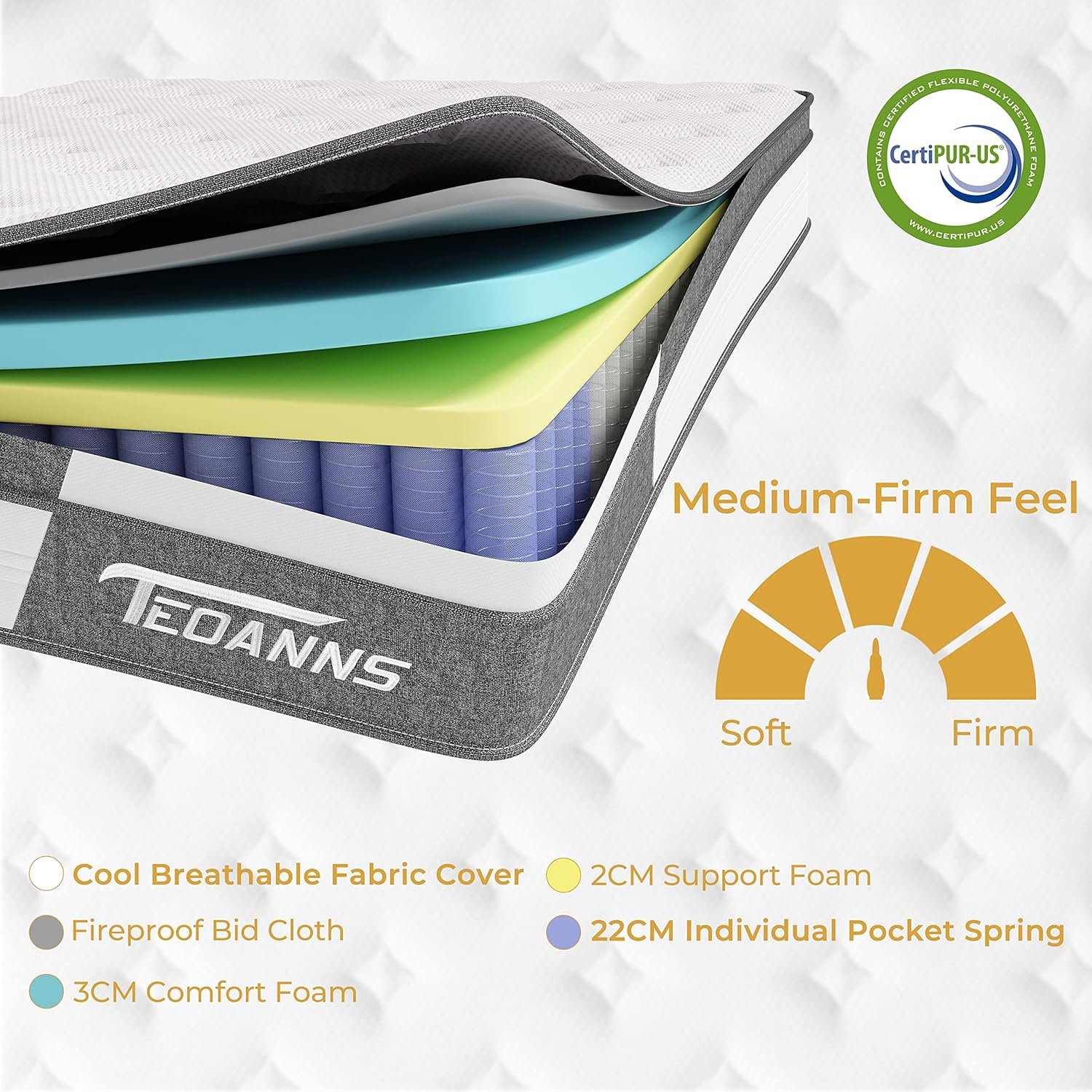 TEOANNS mattress is created with independent springs and supportive foam, comfortable and breathable surface for better sleep.