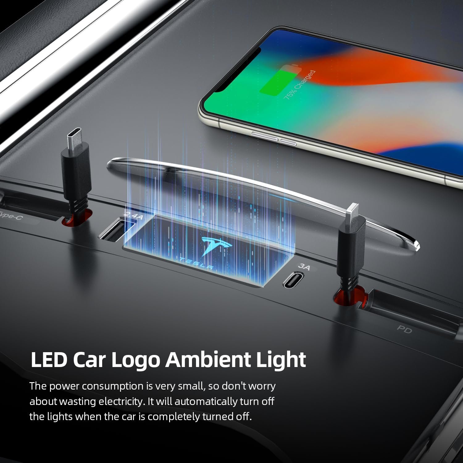 ✅【Easy Installation】The tesla docking station is tool-free, easy to install on the car without disassembly, and fits perfectly. 🚩Because the power supply will not be completely turned off immediately after the car is turned off, the LOGO light will continue to light up. It consumes very little power and will not waste power. No need to worry, it will automatically turn off the light with the car power supply.