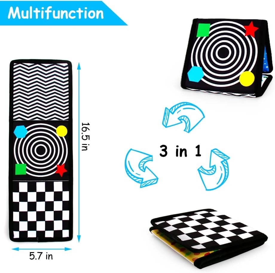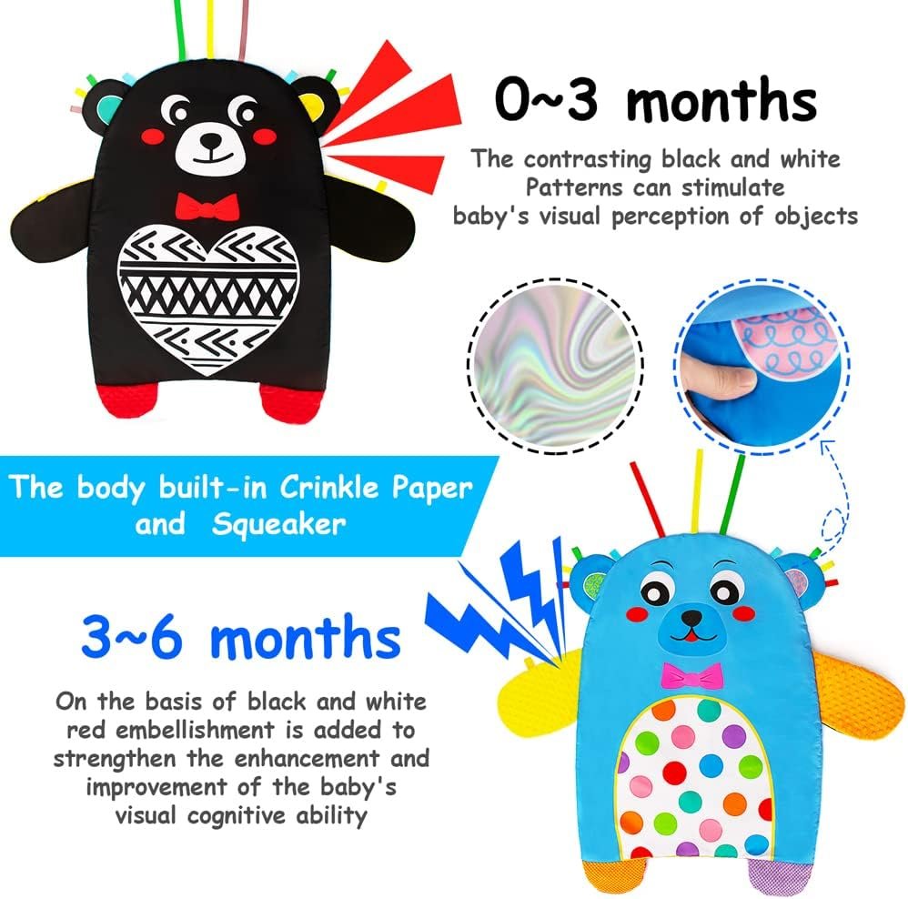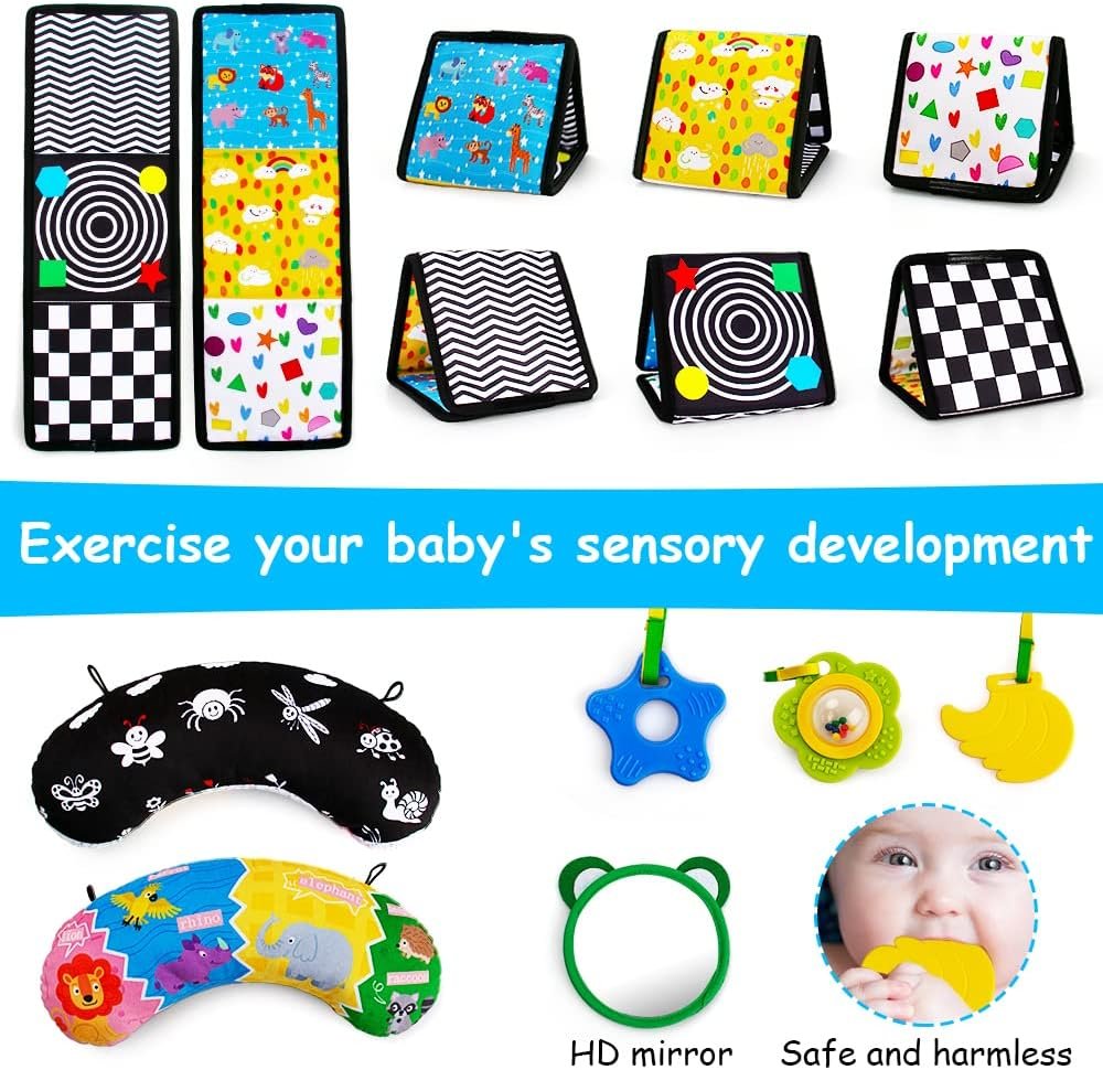 teytoy Tummy Time Pillow 2-Sided Montessori Sensory Toys with Crinkle Mat & Teethers,Black and White High Contrast Baby Toys with Mirror Tummy Time Toys for Newborn Infant Baby Toys 0-12 Months