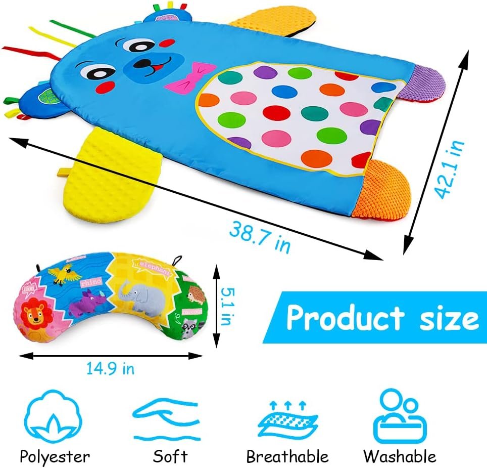 ★.Development Center – Portable Tummy Time development Playmat is designed to address all baby’s developmental needs during tummy time play. Strengthens baby’s shoulders, chest, upper body & crawling skills. Develops Visual and auditory skills and promote healthy development.