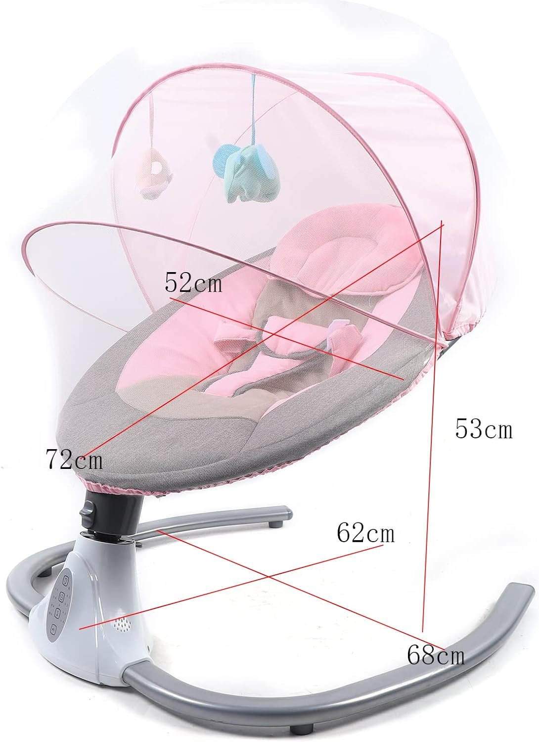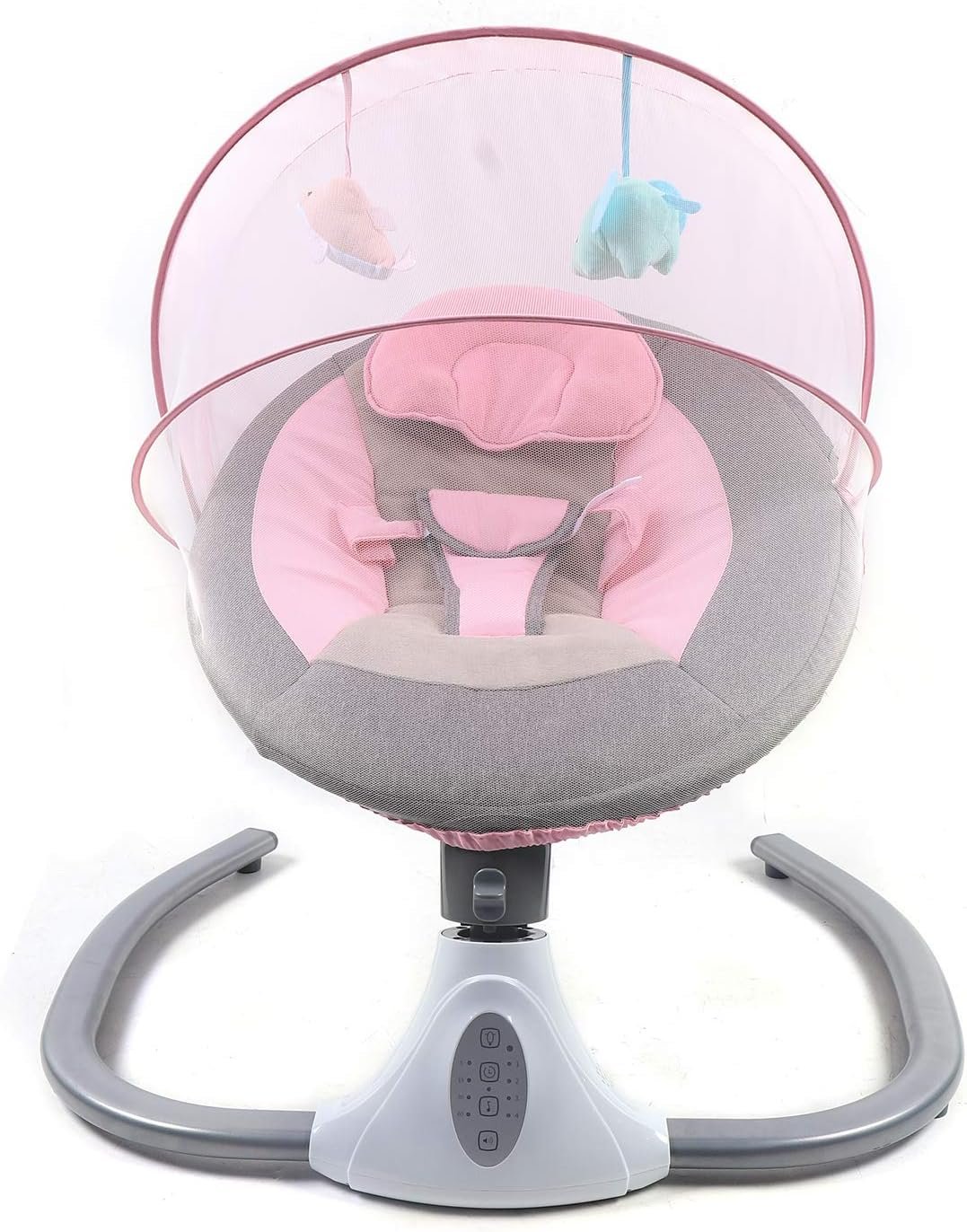 TFCFL Baby Swings for Infants, Foldable Infant Swing Chair Baby Bouncer 4-Speeds with Music Speaker, Remote Control, Netting, Hanging Toys, Seat Cover, Pillow or 0-12 Months Newborn Babies (Pink)