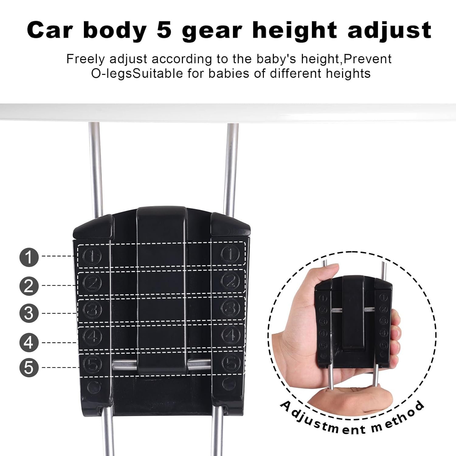 Featuring a removable and washable seat pad,four different height adjustable seat and walker body five height adjustable,easy-fold frame designStable structure to prevent rollover A cone structure with a large bottom and a small top, the chassis is a perfect circle, effectively preventing rolloverThe baby walker combines quality, convenience and fun for you and your little one. It is deserved to have one