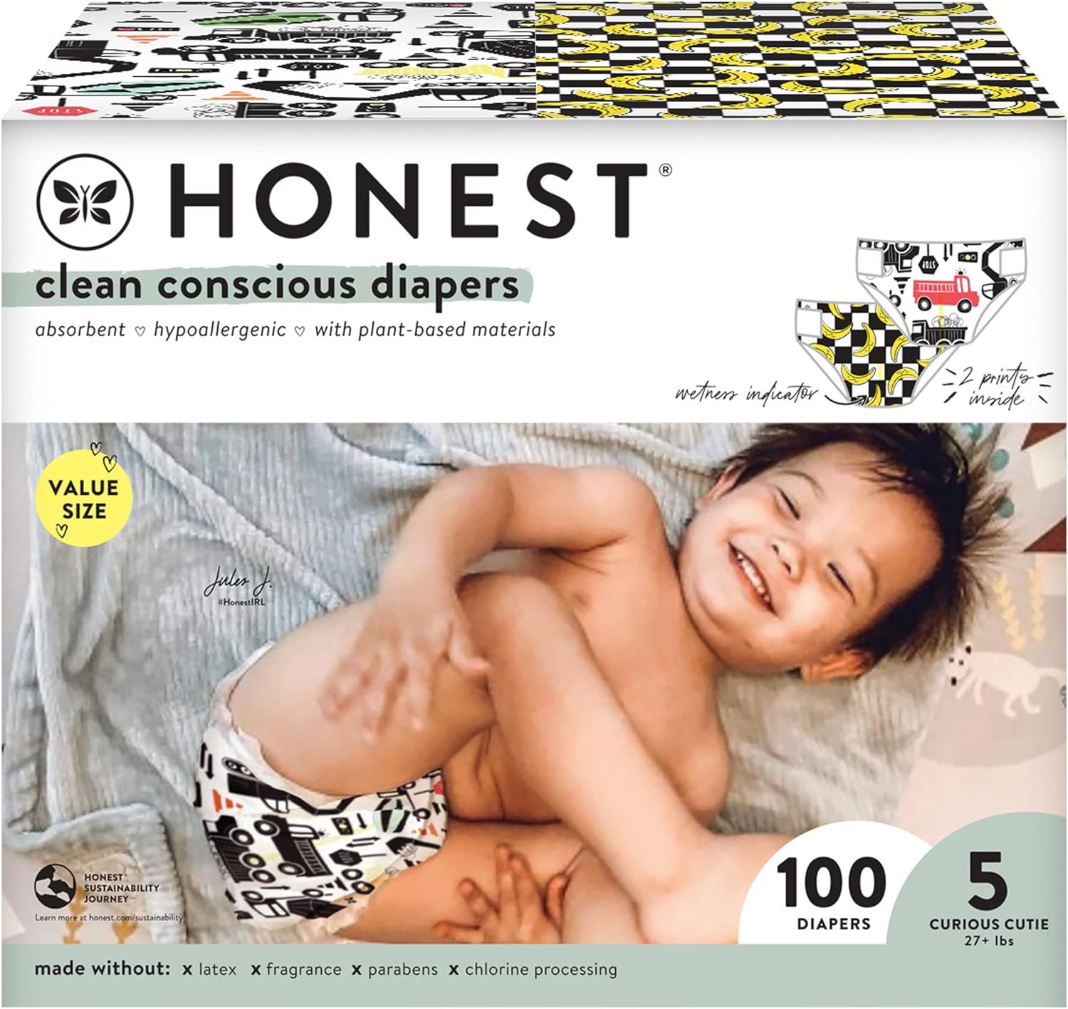 Clean Conscious Diapers are designed with safe plant-based materials, a wetness indicator (so you know when it’s time for a fresh one), enhanced blowout protection, and advanced absorption for dry, happy babes