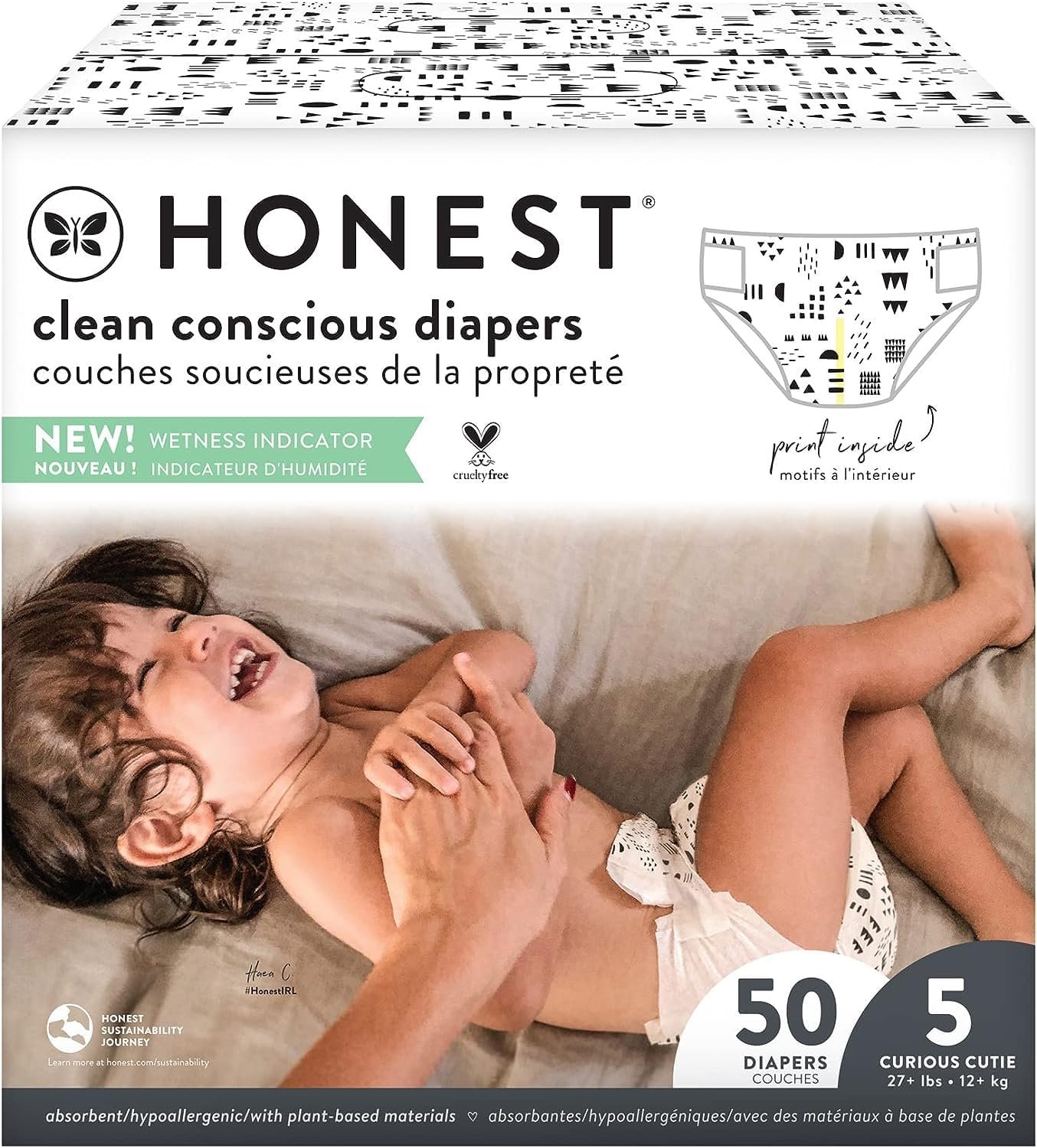 The Honest Company Clean Conscious Diapers | Plant-Based, Sustainable | Pattern Play | Club Box, Size 5 (27+ lbs), 50 Count