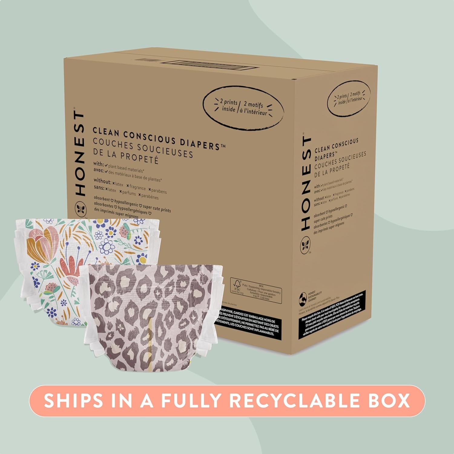 Clean Conscious Diapers are designed with safe plant-based materials + sustainable fluff pulp that’s responsibly sourced from North America to reduce transportation carbon footprint; Featuring advanced leak protection, cloud-like comfort fit for less sag + more swag, and stylish prints; Made with a plant-based backsheet, hypoallergenic inner lining, and now OEKO-TEX STANDARD 100 certified; Designed with unique features for every age + stage