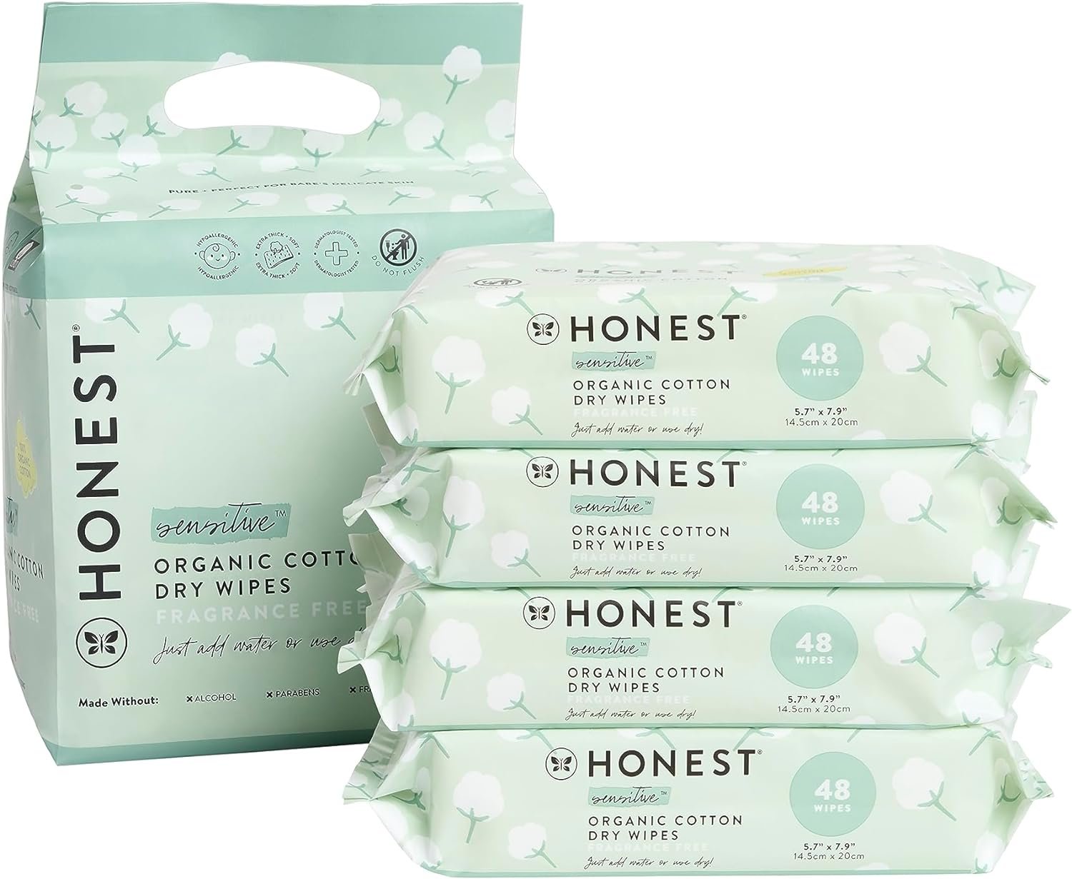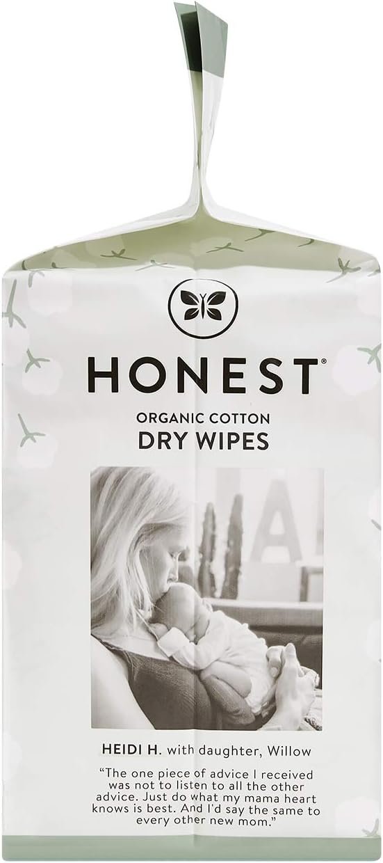 Designed with delicate skin and tender tushies in mind, Honest Dry Wipes are made with sustainably sourced, 100% organic cotton (and nothing more)