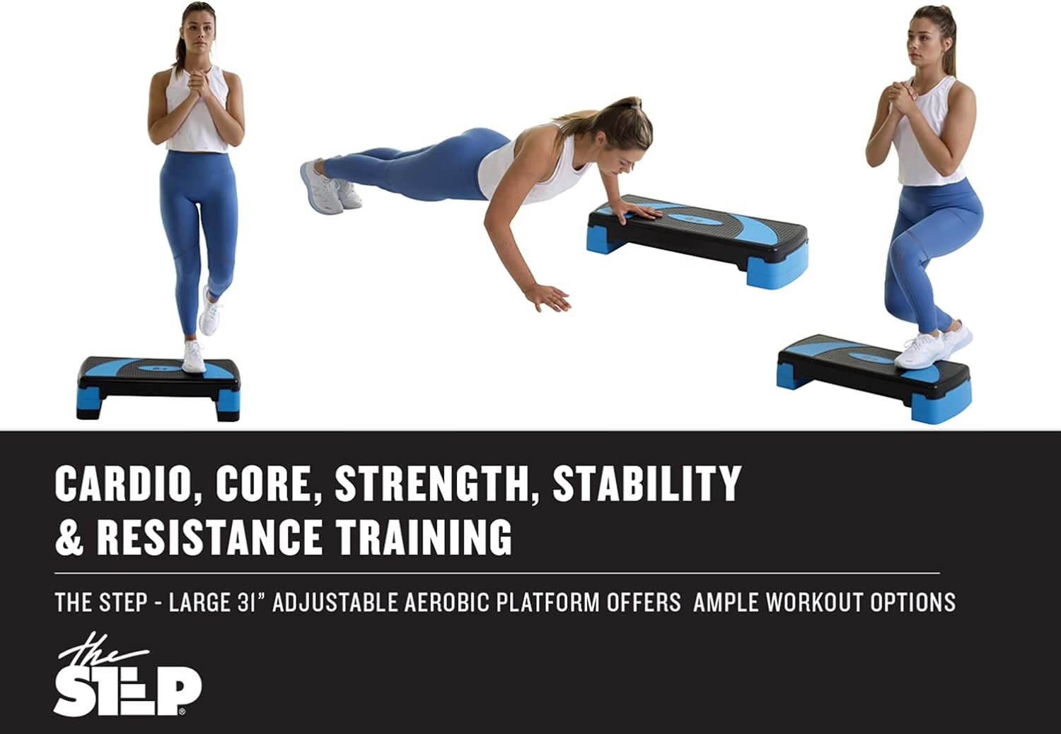 The 31″ Adjustable Aerobic Step Platform is revolutionary. This essential addition to any fitness regimen is one of the best ways to up your cardio with an intense aerobic session, strengthen key leg muscles like the hamstrings and glutes, and target back, arms and chest – all without switching equipment. The aerobic Step platform (30.7 X 11.4 X 4 inches) is easy to store without taking up much space. Adjustable risers lock in under the platform, allowing you to start with an easy workout and up the intensity by raising the 4″ platform to 6″ or even 8″. This platform provides everything you’re looking for – portability, ample workout options and essential safety features. The Platform can support over 400 pounds and has a safe shock absorbing, nonslip surface. This product is backed by a 90-day manufacturer’s warranty period.