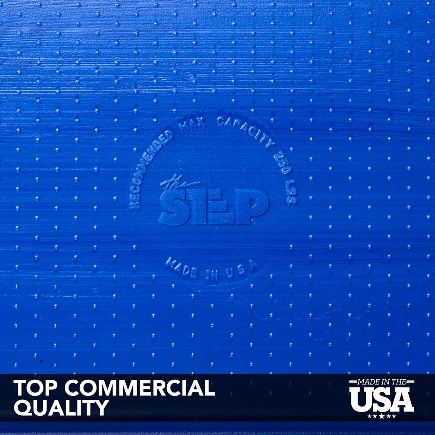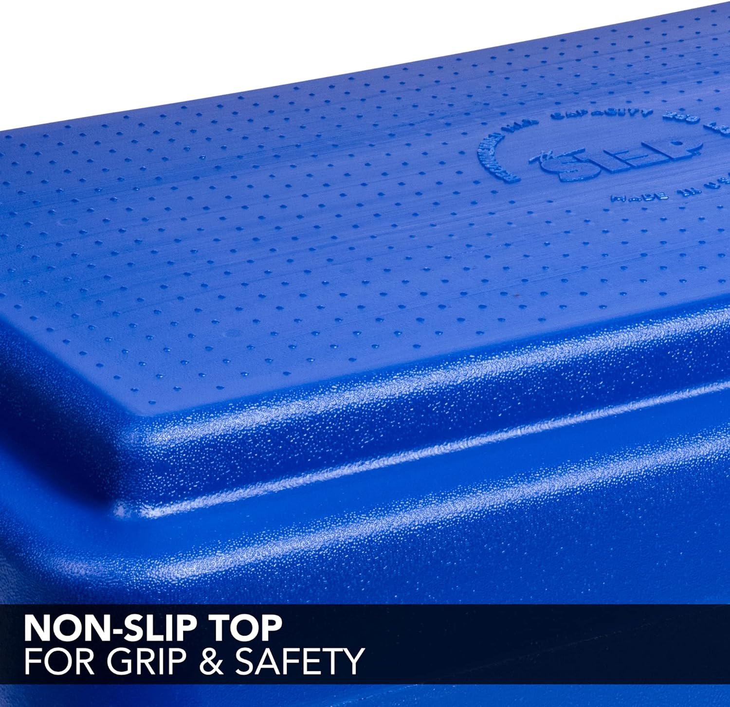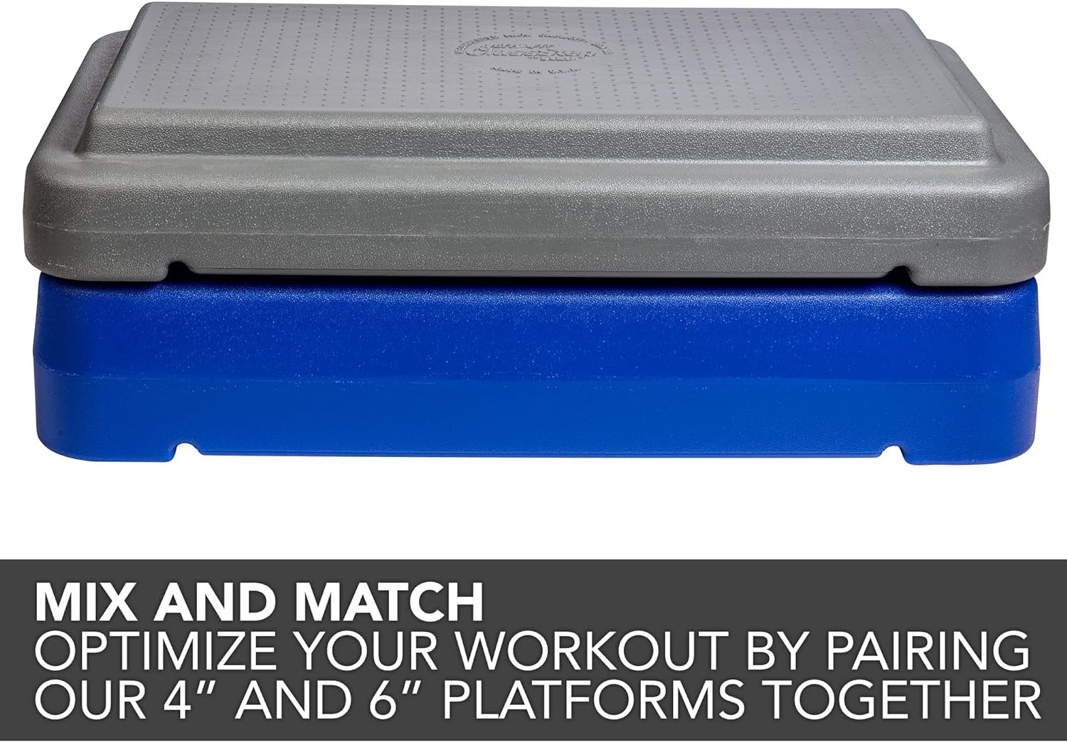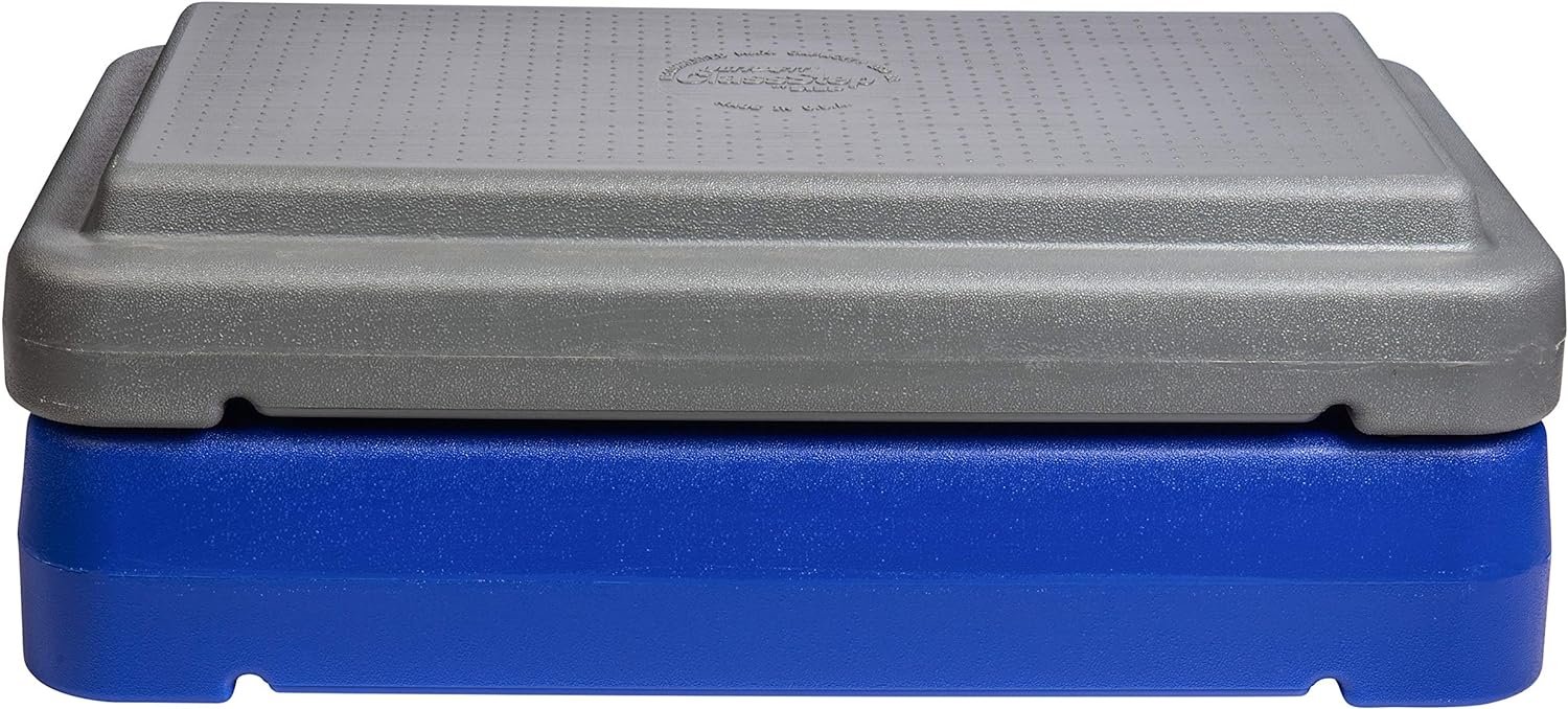 Step up your workout with The Step. This Step is great for institutional settings to accommodate a variety of aerobic and strength exercises. This set includes one (1) (22″ L x 12″ W x 6″ H) blue stepping surface with a nonslip, textured top for added safety. Each platform is made with eight nonskid feet to prevent sliding or moving during exercise. These sturdy platforms can be used on any type of indoor flooring from carpet to concrete to hardwood without leaving behind scratches. Each platform also features a resistance band notch, which safely holds the band in place. Made in the United States, this platform is crafted from durable, recyclable high-density polyethylene that supports up to 250 pounds. This product is backed by a 90-day manufacturer’s warranty period.
