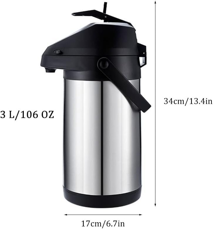 Thermal Coffee Carafe With Pump, Lever-Action Airpot, Stainless Steel Insulated Flask, Double Walled Large Insulated Vacuum Flask, 24 Hour Heat Retention (Size : X-Large)