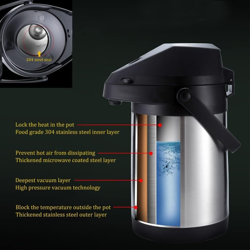 ✪ QUALITY: Our double walled thermal airpot is made up of a durable stainless steel interior and exterior, built to withstand the demands of everyday use.