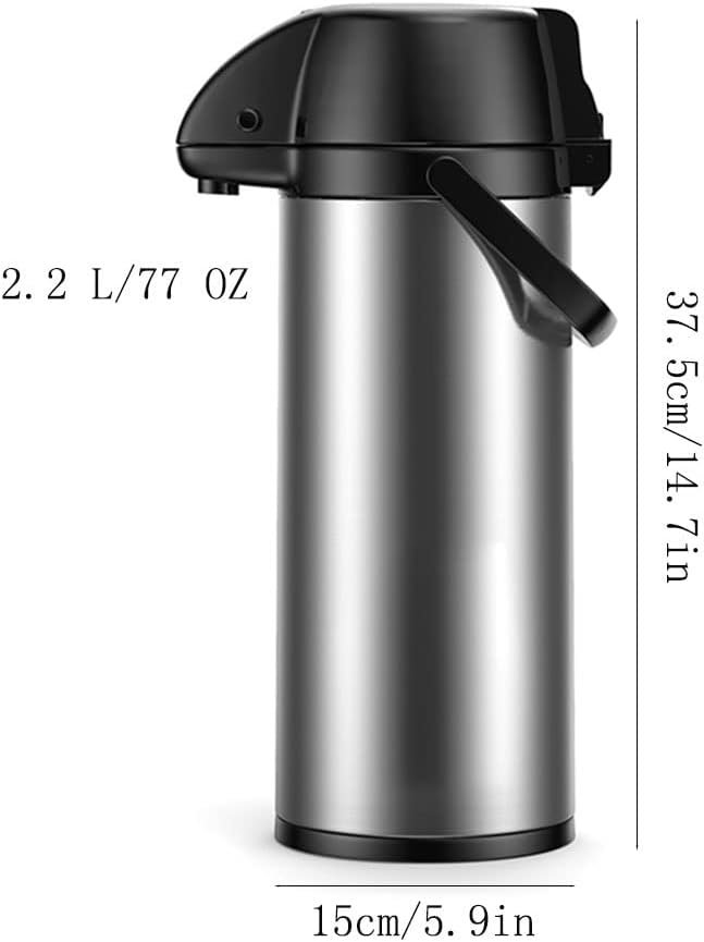 Thermal Coffee Dispenser,Insulated Coffee Airpot with Coffee Air Pump,48 Hour Heat Retention/24 Hour Cold Retention,Stainless Steel Coffee Carafe for Hot/Cold Water and Coffee