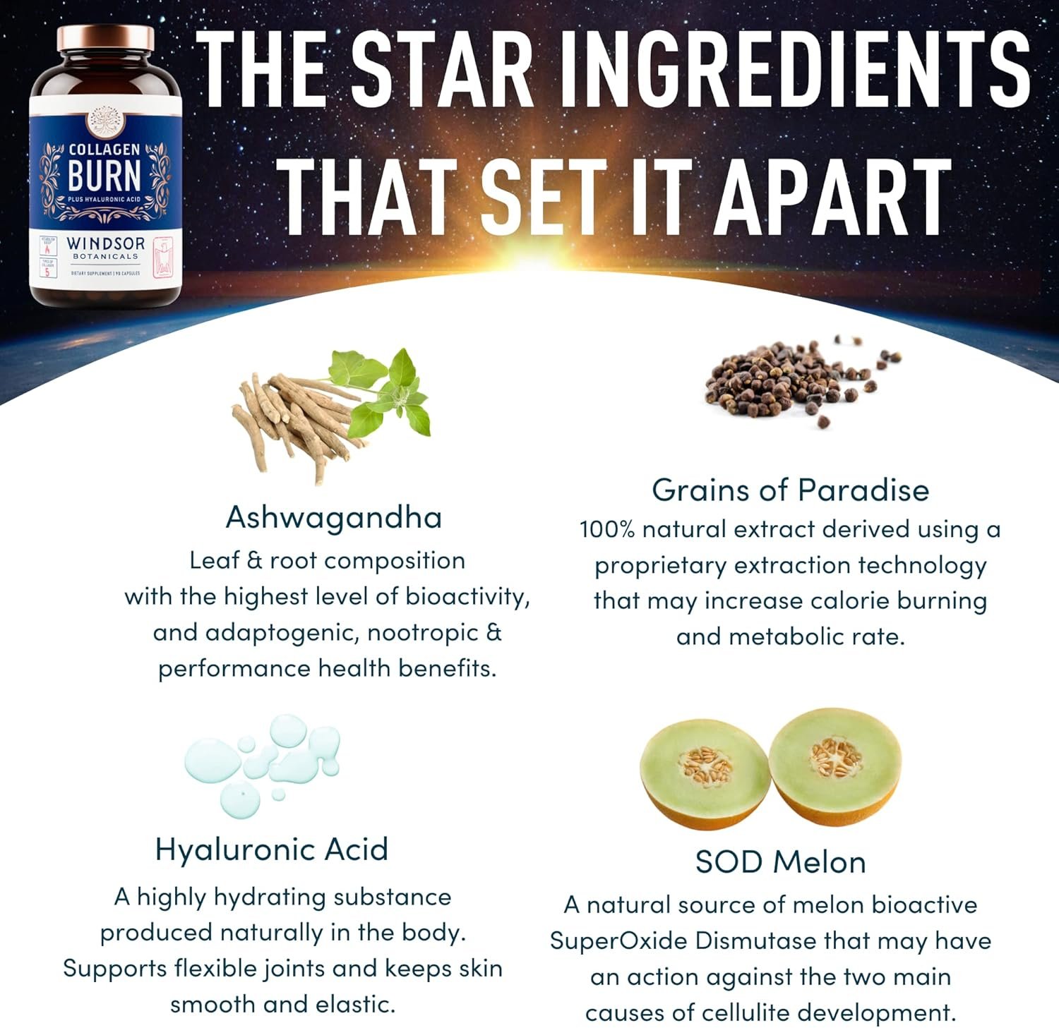 High-potency thermogenic collagen complex supplement for men and women. Packed with powerful collagen types (1,2,3,5 and 10) plus metabolism function support grains of paradise seeds.