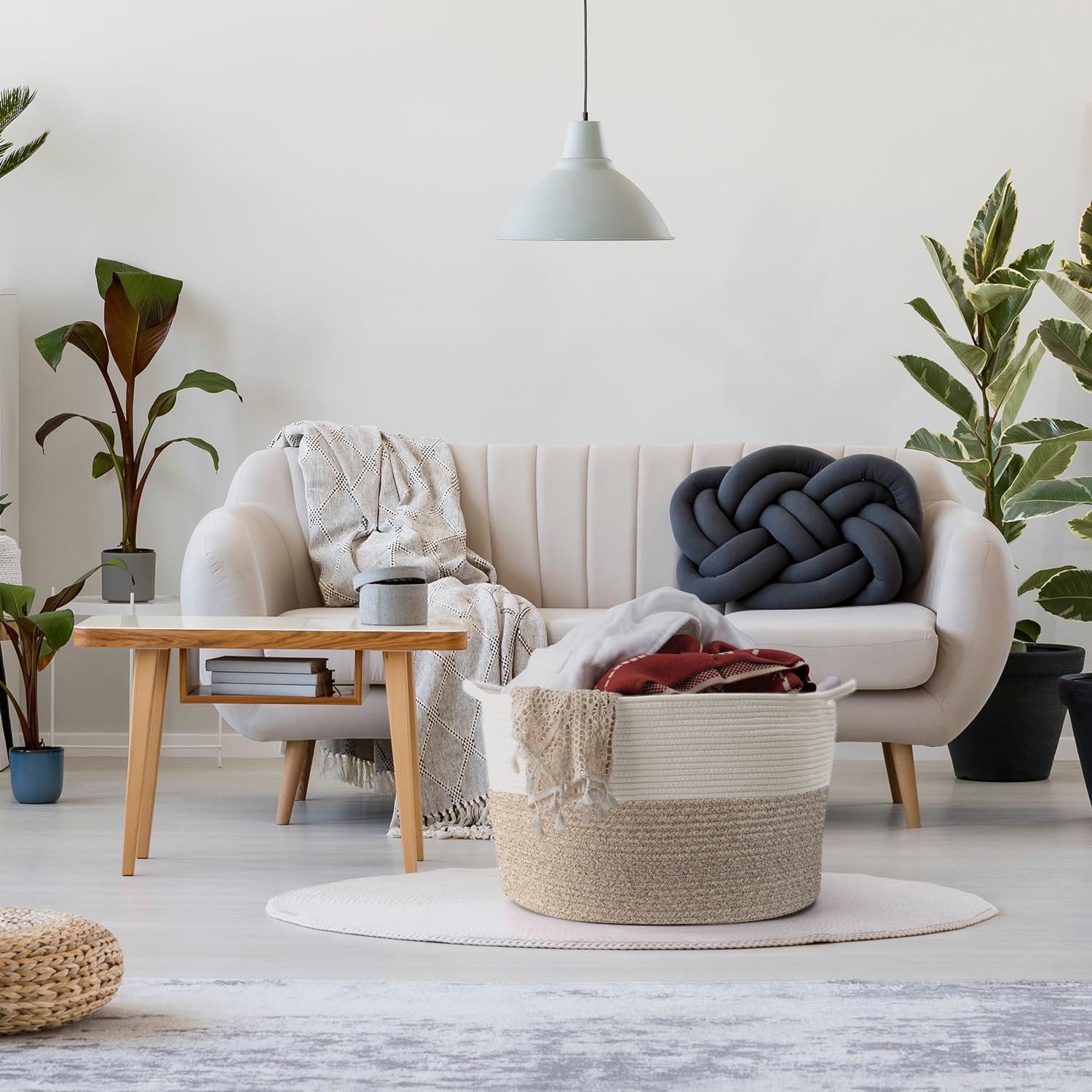 Built-in Handles: This cotton rope basket has handles with reinforced stitching, making it easier to move heavy items from one place to another