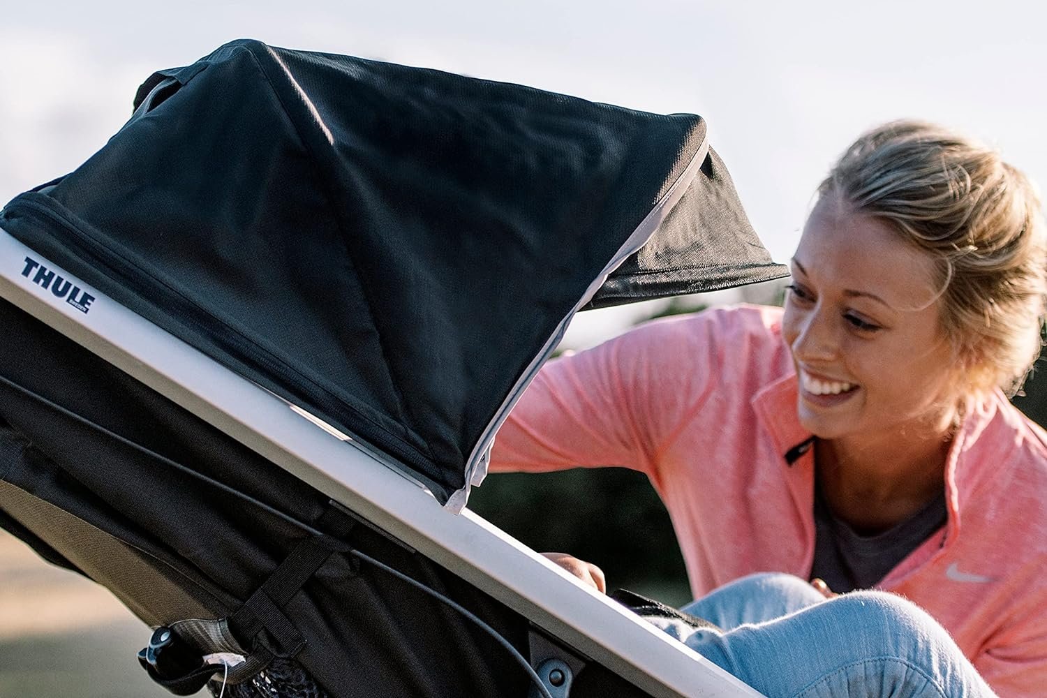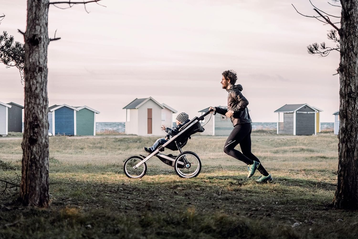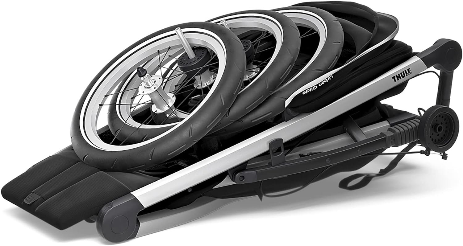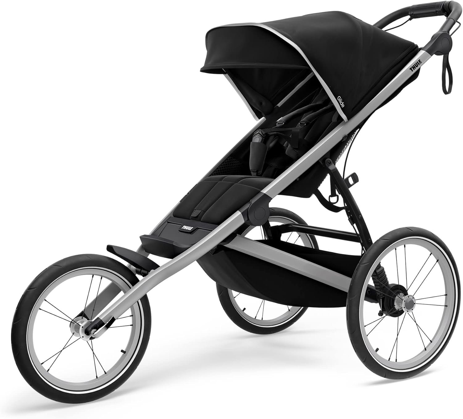 Thule Thule Glide 2 is a high performance jogging stroller designed for serious runners. Lightweight and aerodynamic, this running stroller is the perfect training partner. An oversized fixed front wheel, 18″ rear wheels, and built-in suspension provide an smooth ride for both parent and child. A twist hand brake provides speed control on hills while reflective details keep you visible and safe. The one-handed reclining seat ensures comfortable naps on the go and the magnetic peekaboo window allows you to check on your little one without stopping. This three wheel stroller also features a one-handed compact fold to easily store and transport. Train for your next race as a family with the Thule Glide 2 all-terrain stroller.