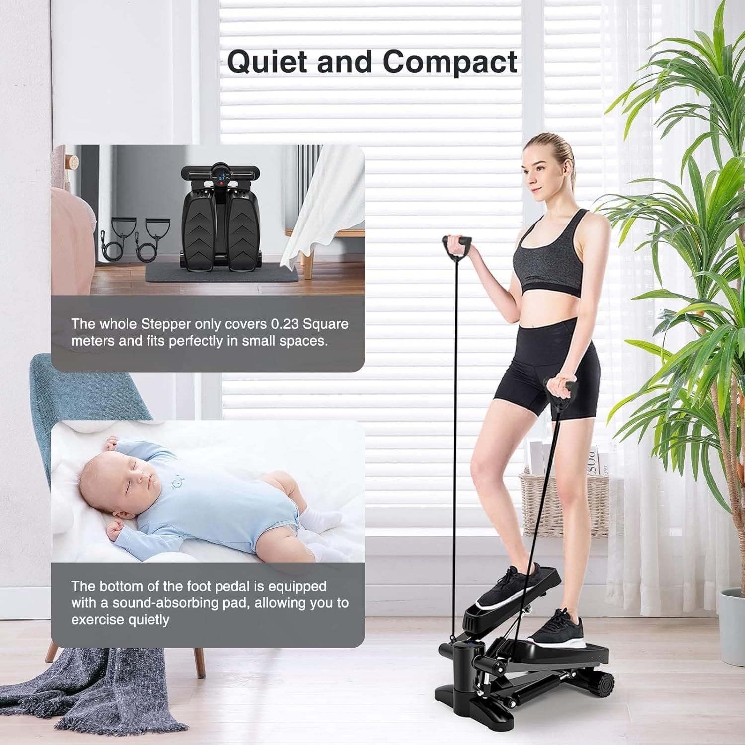 🏃♀️【Mini Stepper with Resistance Bands 】The whole body twist of the stepper can effectively exercise the waist, buttocks, legs, and arms, and achieve fat burning in multiple parts of the body at the same time on the stepper, creating a perfect body shape. It can also enhance cardiopulmonary function and aerobic respiration capacity. Perfect for weight loss, body shape, and daily exercise.