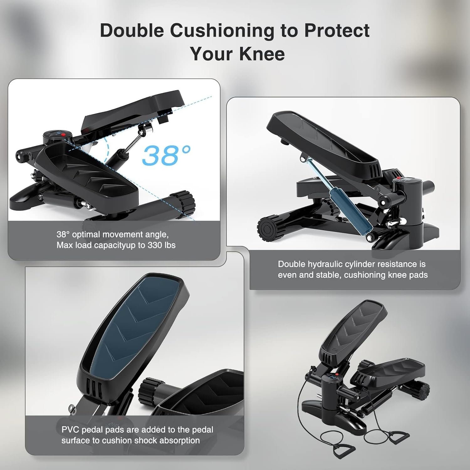 📉【Weight Capacity 330 LBS Stepper 】Stair stepper for exercise used 2mm high-quality steel and precision bearings, more sturdy and durable. The front bend design and the all-metal body make our step machines more load-bearing up to 330lbs(150kg).