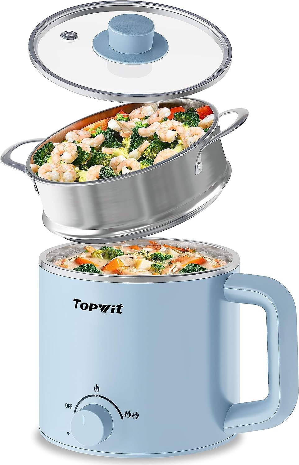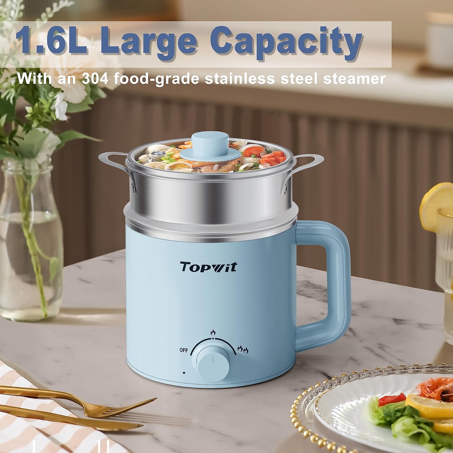 【Multi-Use Electric Cooker】 Equipped with a dual power setting(200W & 600W), the Topwit electric pot is suitable for a variety of cooking methods and perfectly meets your daily needs. With the 200W power setting, you can make soup, porridge, oatmeal, and boiled eggs. For cooking noodles, pasta, dumplings, you can switch to high power(600W)setting to boil the water faster.