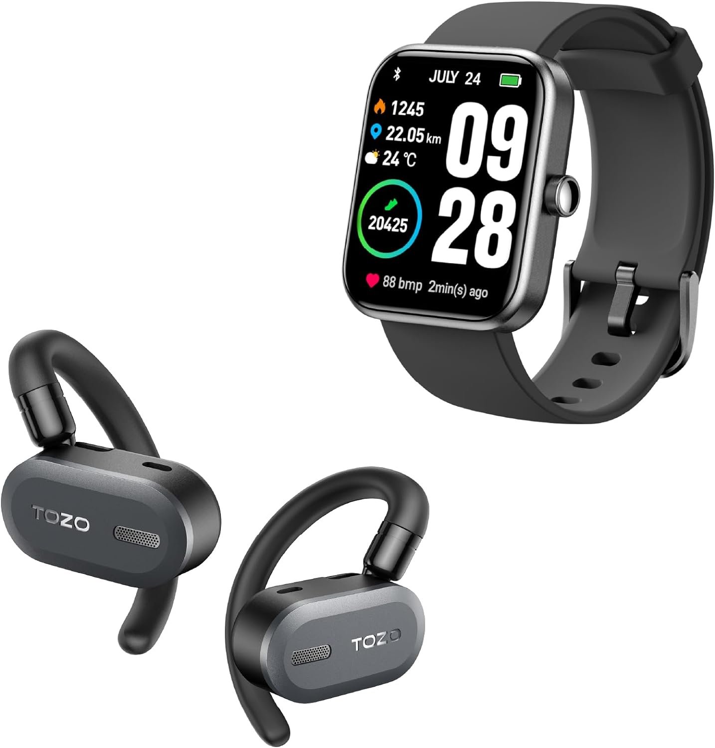 TOZO OpenBuds Lightweight True Open Ear Wireless Earbuds Black+TOZO S2 44mm Smart Watch Black