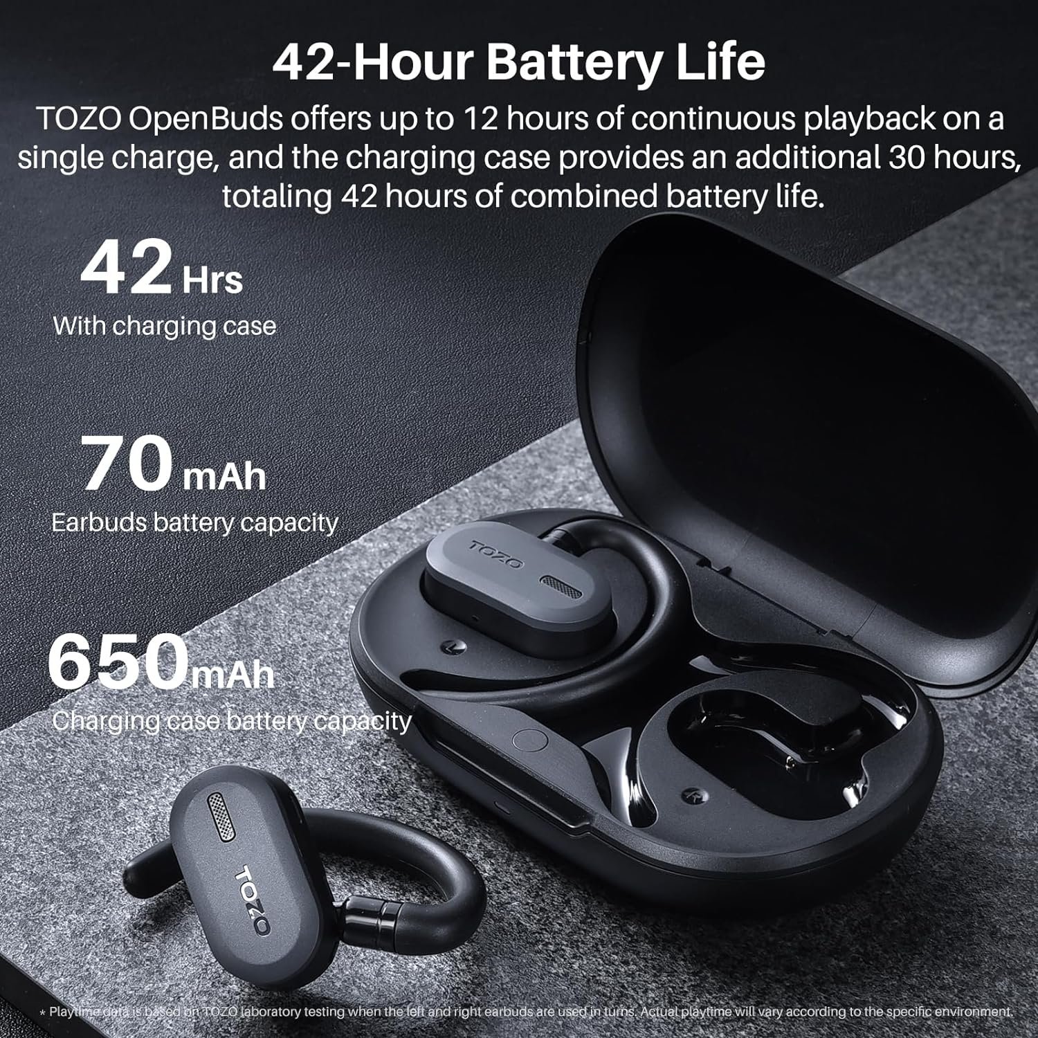 【Dual Connectivity & 42 Hours Playtime】The TOZO Open Buds feature powerful dual connectivity, allowing you to connect two phones simultaneously for seamless switching. The slim charging case is convenient to carry with you, and the headphones have a total battery life of up to 42 hours, ensuring uninterrupted listening for extended periods.