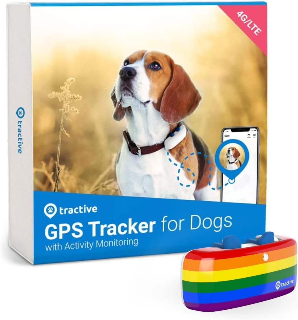 Tractive GPS Pet Tracker for Dogs – Waterproof, GPS Location & Smart Activity Tracker, Unlimited Range, Works with Any Collar (White with Pride Cover)