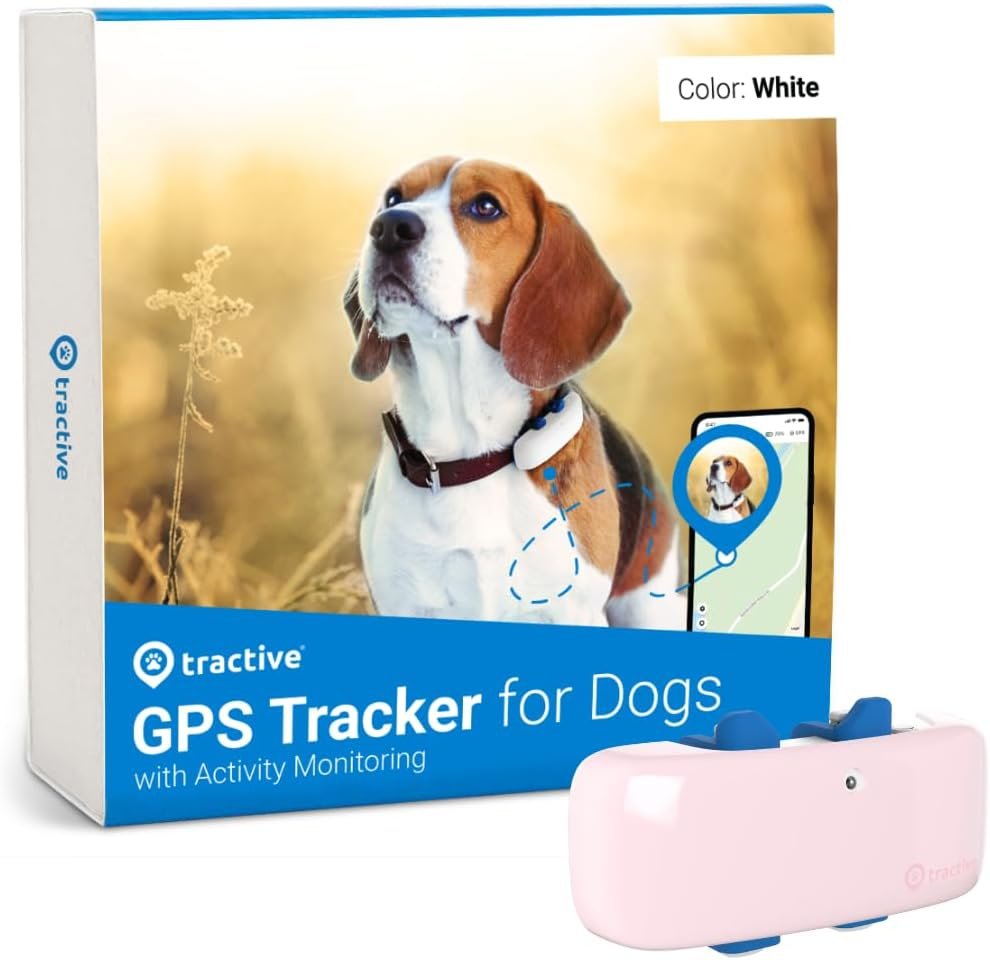 Tractive GPS Tracker & Health Monitoring for Dogs – Market Leading Pet GPS Location Tracker, Wellness & Escape Alerts, Waterproof, Works with Any Collar (White with Pink Cover)