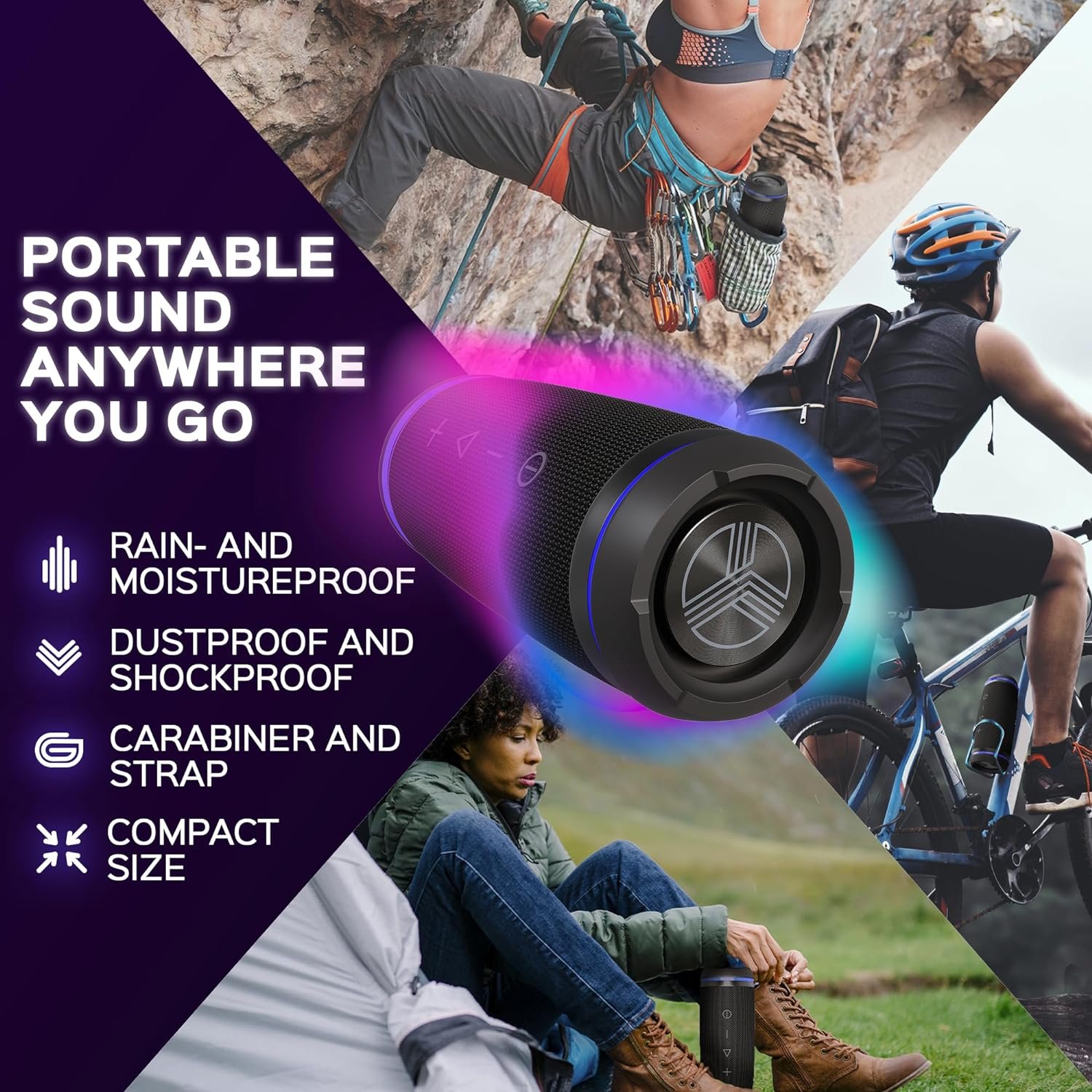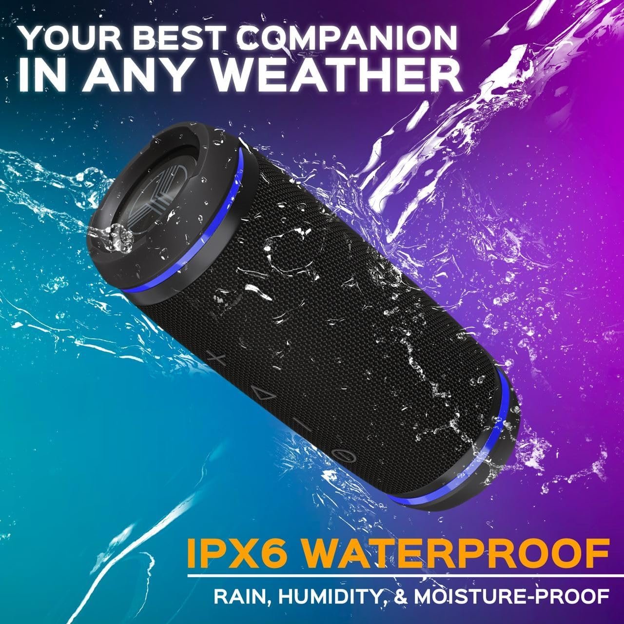 Durable & Rugged Body – Defy the elements with a shockproof, dustproof, impact-resistant, and IPX6 waterproof Bluetooth speaker. Great for outdoor bluetooth speaker waterproof wireless listening in environments like the beach, boat, or garage.