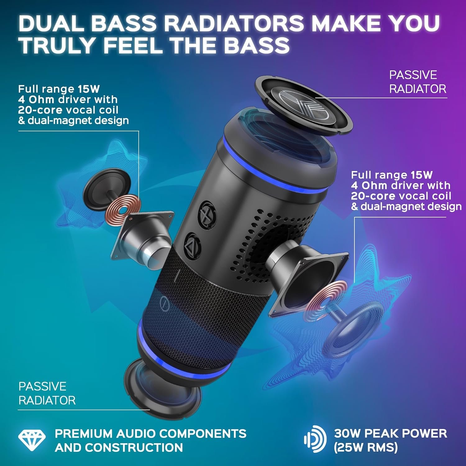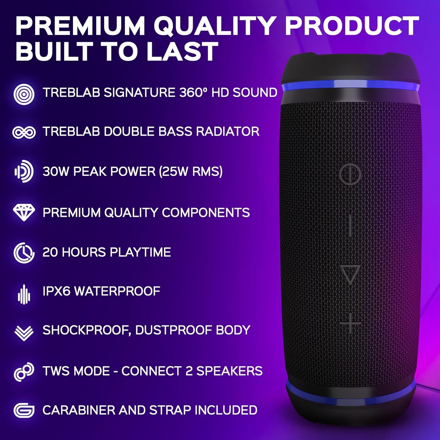 Rich 360° HD Sound – Hear music like never before with 30W (25W RMS) bluetooth stereo speaker crafted around a 360° HD surround sound system. Pair with other HD77 speaker through TWS speaker mode for 60W of wireless surround sound speaker with crystal-clear sound and a loud, deep bass.