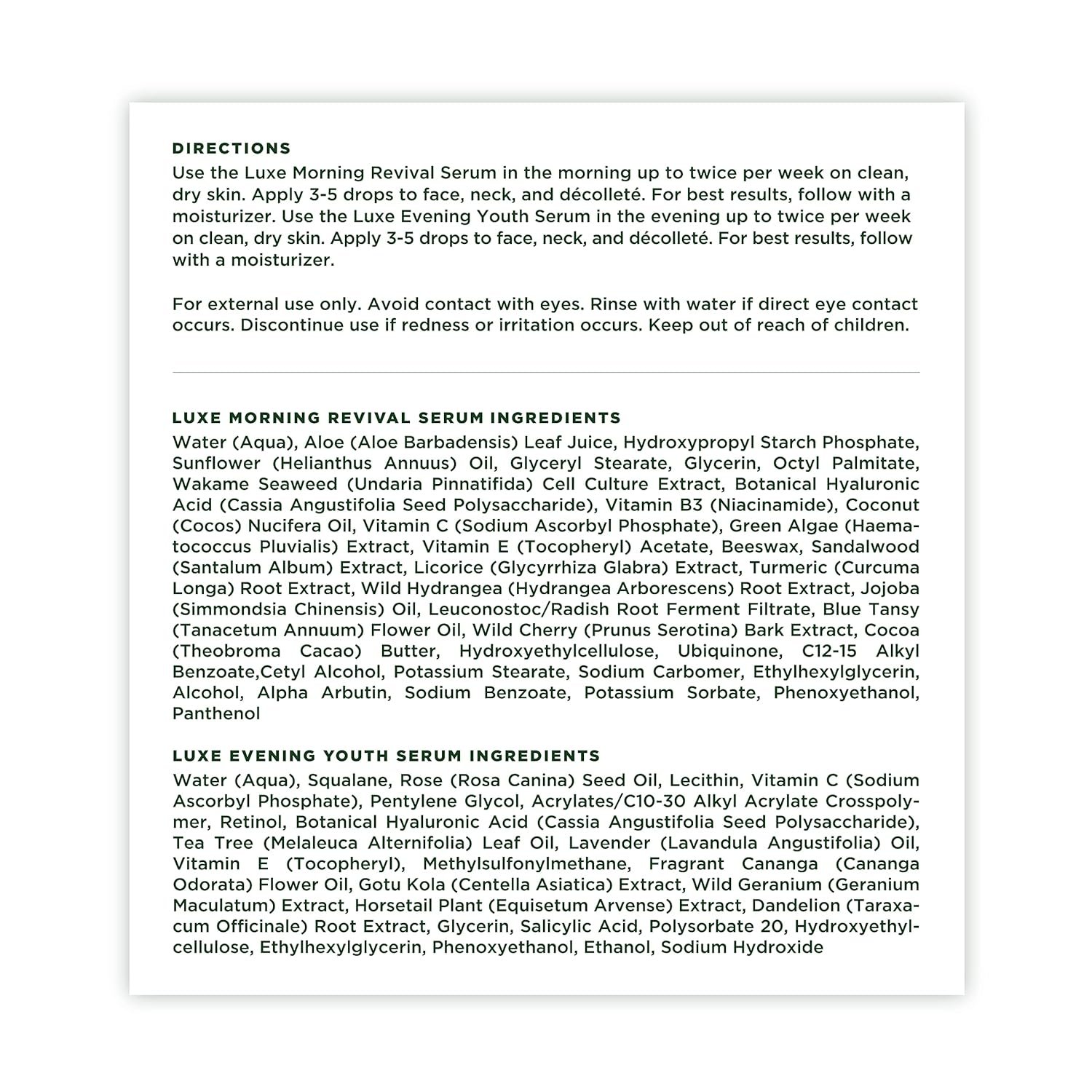 Tree of Life Luxe Age Defying Serum Combo Pack, Luxe Morning Revival Serum and Luxe Evening Youth Facial Serum, 2 Count x 1 Fl Oz