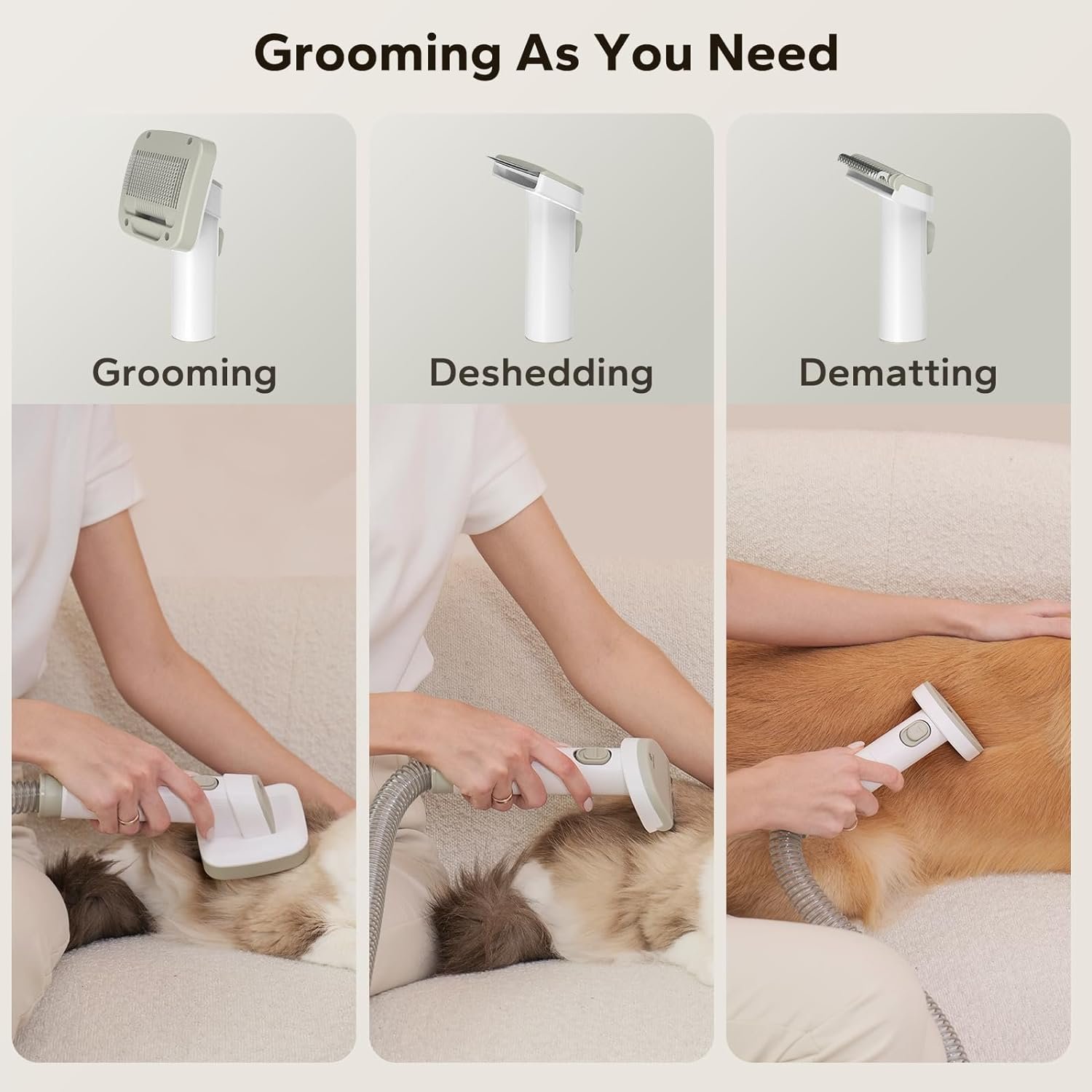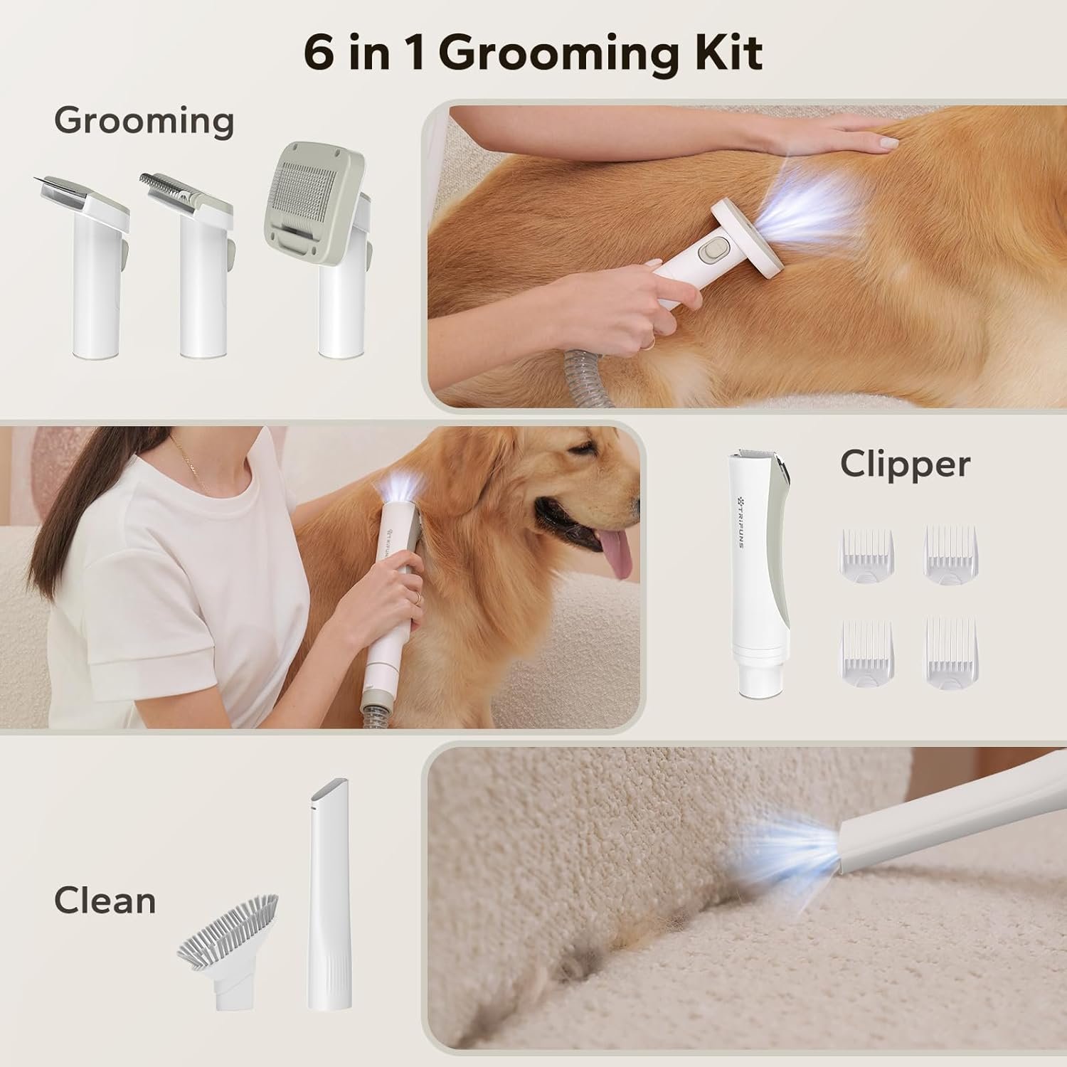 All in One Pet Grooming Vacuum: Our 6-in-1 Dog Grooming Kit is the ultimate solution for all your pet grooming needs. It includes a grooming brush, deshedding brush, undercoat rake, electric clipper, 2-in-1 crevice nozzle brush, and large-capacity dust cup for uninterrupted grooming and cleaning.