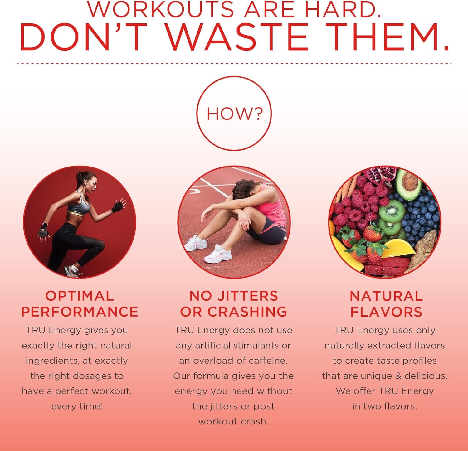 INCREASE PERFORMANCE – TRU Energy gives you the exactly right natural ingredients at the right dosages to have the perfect workout and increase your performance every time!