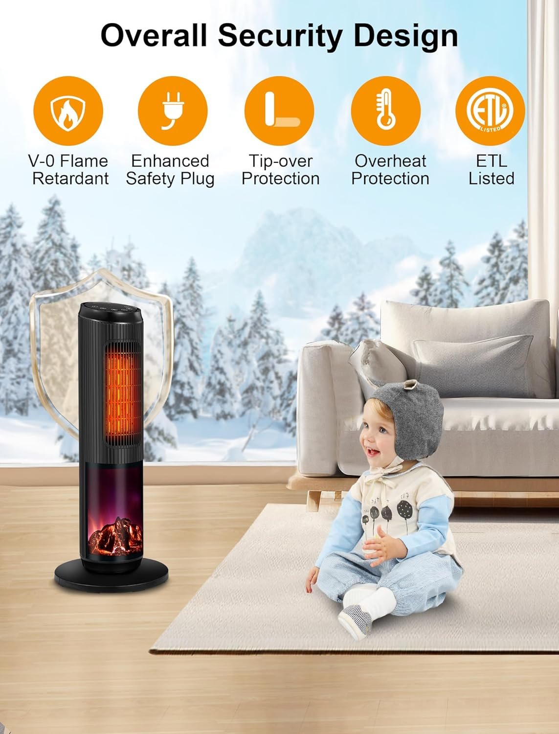[Comprehensive Safety and Dependability] Crafted from flame-retardant V0-rated material and ETL-listed, this ceramic heater prioritizes safety. Its built-in safeguards include protection against overheating and tip-over incidents. The reinforced plug guarantees uninterrupted usage, eradicating concerns about short circuits. Enjoy hassle-free operation day and night, even around children and pets.
