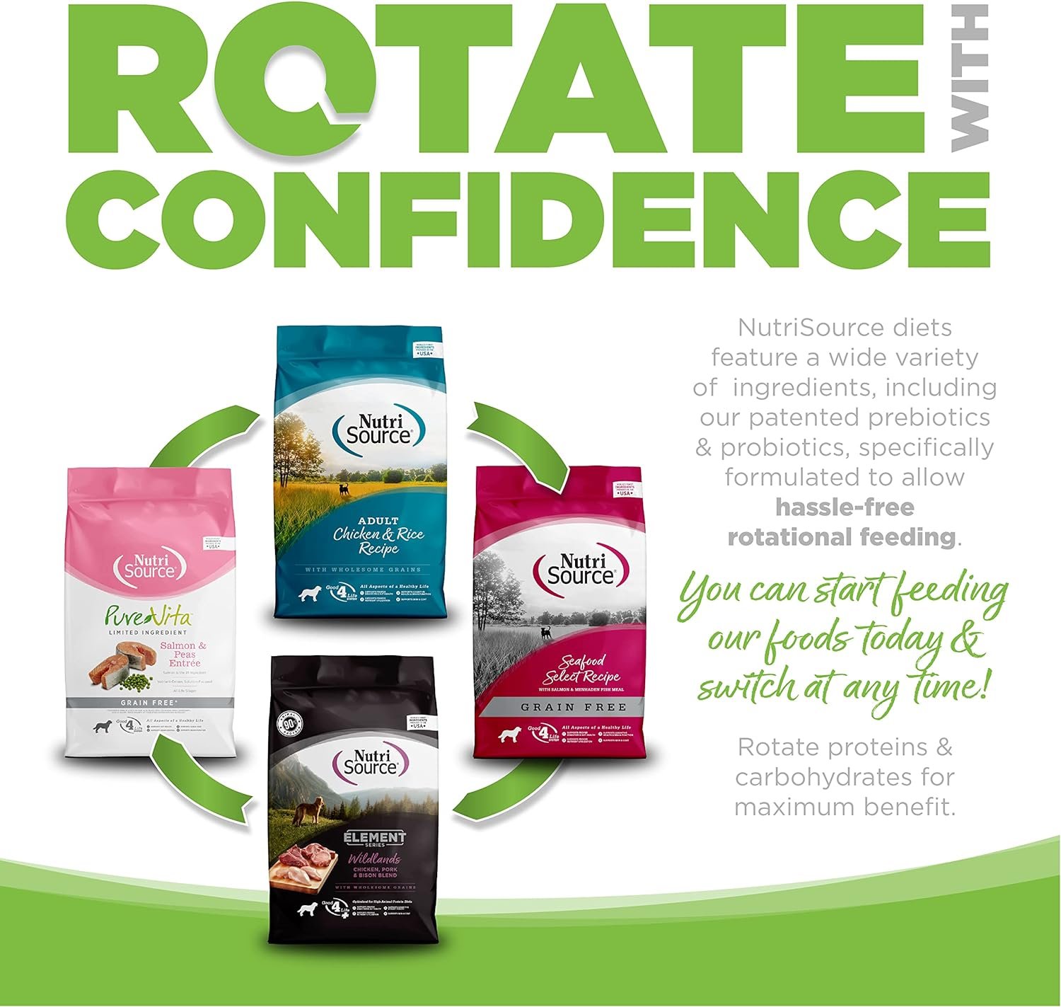 NutriSource has recipes for puppies, all life stages, small breeds and large breeds as well as recipes targeted for weight management, performance, and seniors. All NutriSource formulas deliver compact nutrition and include prebiotics and probiotics.