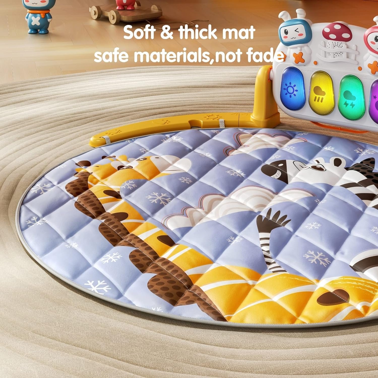 Large Size Baby Play Mat: There are many ways to play in the baby gym: lying down, sitting, prone. The angle of the piano can be adjusted so that the baby can lie, sit or play on the piano. Mothers could also change their babies’ diapers here.