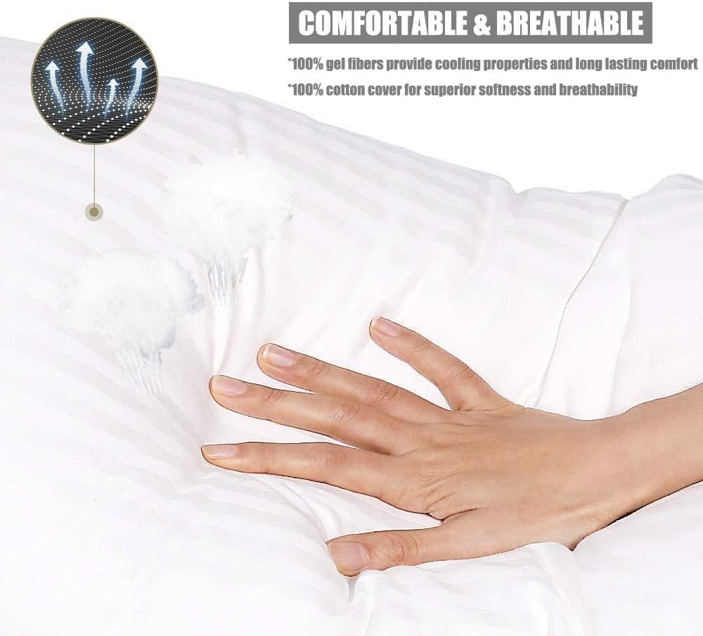 Pack of 4 pillows, gel fibers provide cooling properties and long lasting comfort. Microfiber cover for super softness and breathability.