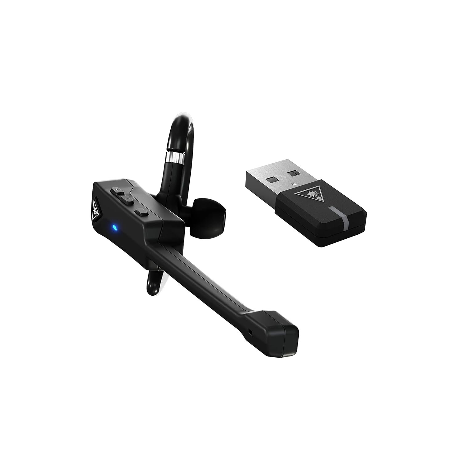 Chat with teammates and taunt your enemies with the Turtle Beach Recon Air Wireless Chat Communicator, offering clear inbound and outbound chat in a sleek, minimalist design. Wireless USB-transmitter connection makes setup a breeze on PS5, PS4, Windows PCs & Mac, and built-in Bluetooth pairs with your iOS or Android device. Plus, Bluetooth 5.1 technology lets you simultaneously connect your iOS or Android device while gaming so you can answer calls and use mobile smart assistants without an interruption in the game. The Recon Air also works great beyond gaming for conference calls on Zoom, Microsoft Teams, Skype, Google Meets and more when connected via wireless USB transmitter or Bluetooth directly to your PC or Mac. The uni-directional, noise-cancelling, gaming-tuned mic picks up your voice loud and clear, while minimizing background noise, and you’ll hear your teammates every word through the earbud speaker. Ensuring a comfortable fit for every gamer, the Recon Air has a customizable design, allowing you to rotate the ear hook to wear the headset on either side of your face, and three interchangeable eartips for the perfect fit. A long-lasting 10-hour battery keeps you in the game or connected in a call without interruptions, plus a 15-minute quick charge using the included USB-C cable provides an additional 3-hours of battery life. Keep your eyes on the game and easily adjust chat audio volume, mute your mic, and use Bluetooth function controls, all right from the headset using integrated controls.