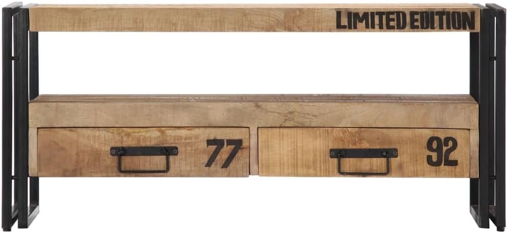 The HiFi cabinet is made of solid mango wood, which is a hardwood with dense grains. Rough mango wood not only has the strength to bear the weight, but also stands the wear and tear of time. Therefore this beautifully-designed cabinet is stable, durable and eye-catching. This stereo cabinet is fully handmade and the aesthetically-appealing wood grains make every piece of furniture distinctive and slightly different from each other. This lowboard features 2 drawers and 1 compartment, providing ample space for storing your multimedia appliances, books, as well as various other items.
