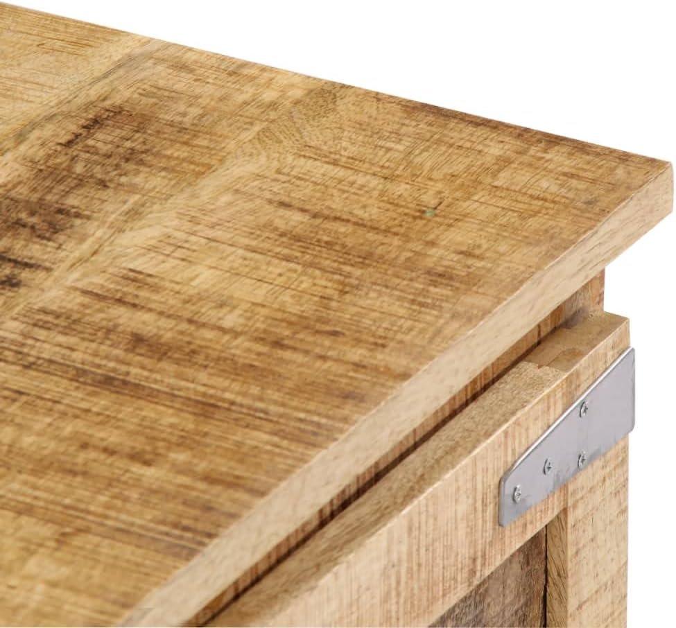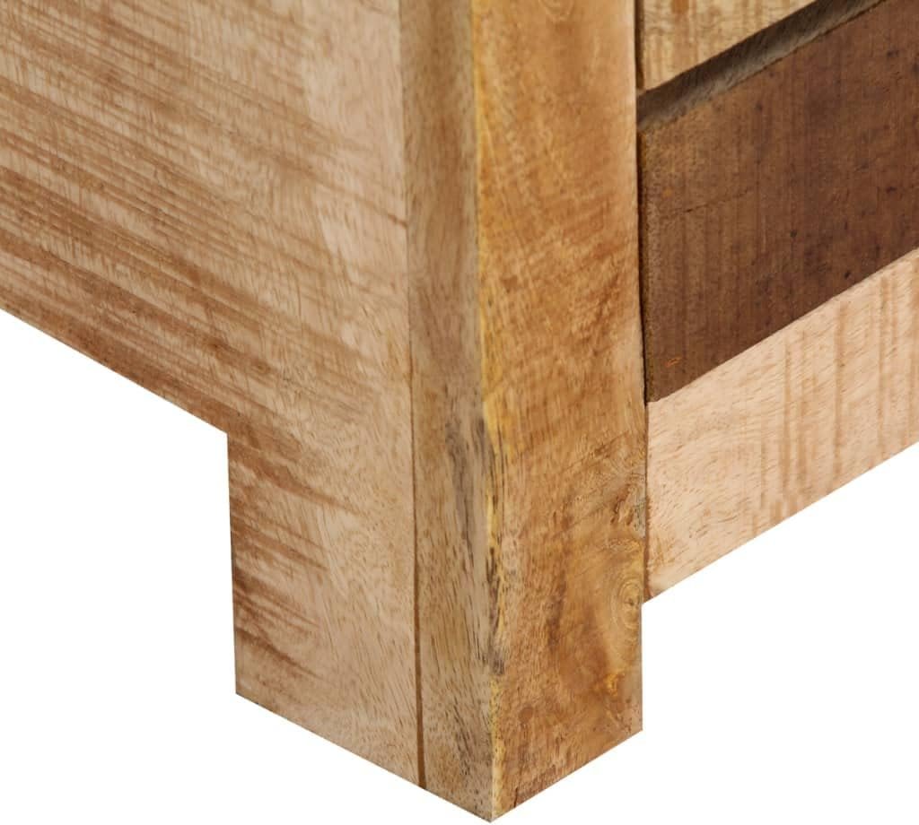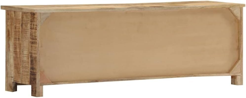 This wooden TV cabinet exudes a rustic charm. It will become a truly centerpiece of your interior. The sideboard is made of solid mango wood, a hardwood with dense grains.