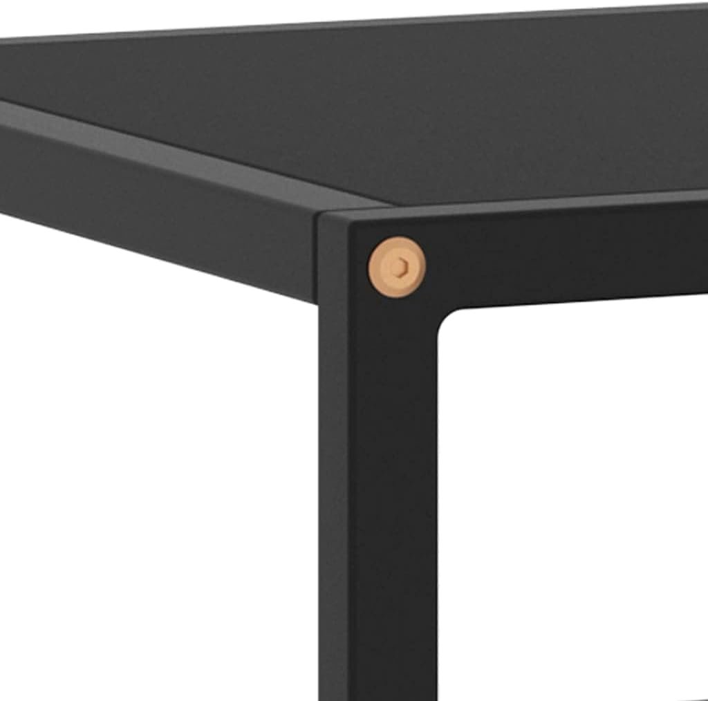Color: Black. Material: Tempered glass, powder-coated steel. Dimensions: 39.4″ x 15.7″ x 15.7″ (L x W x H). Glass thickness: 0.2″. Assembly required: Yes.