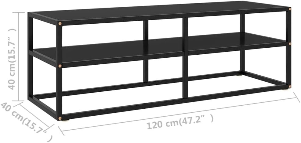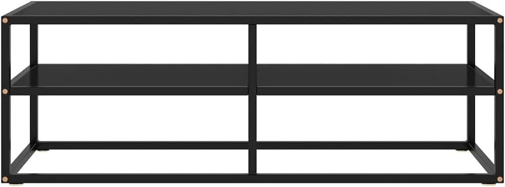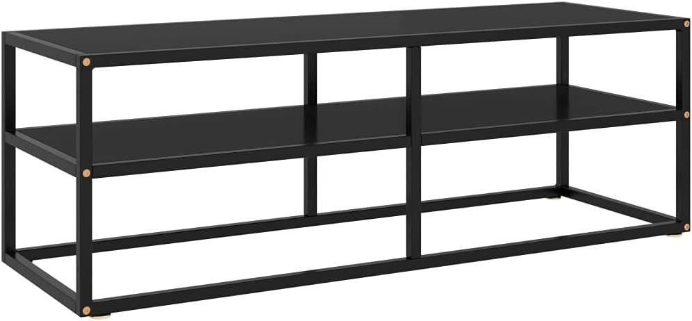 Tv Media Cabinet,Entertainment Center,Open Shelf for Televisions TV Cabinet Black with Black Glass 47.2″x15.7″x15.7″,for Living Room