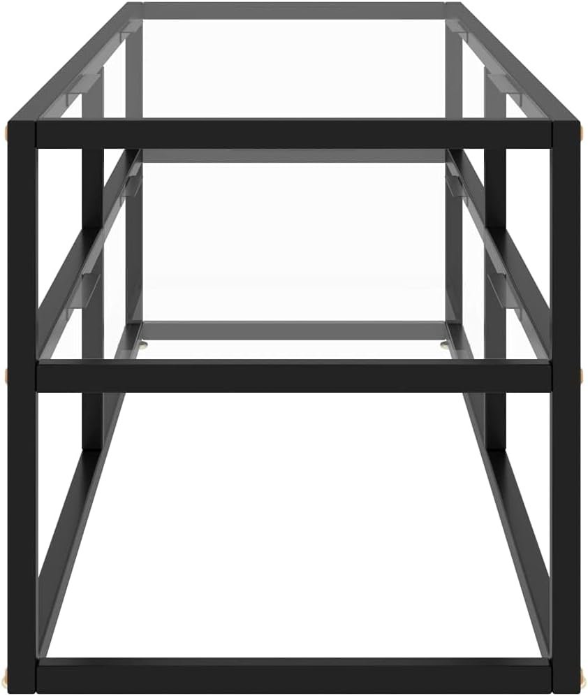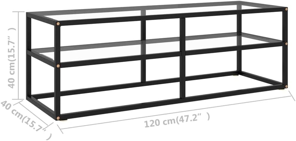 Color: Black and transparent. Material: Tempered glass, powder-coated steel. Dimensions: 47.2″ x 15.7″ x 15.7″ (L x W x H). Glass thickness: 0.2″. Assembly required: Yes.
