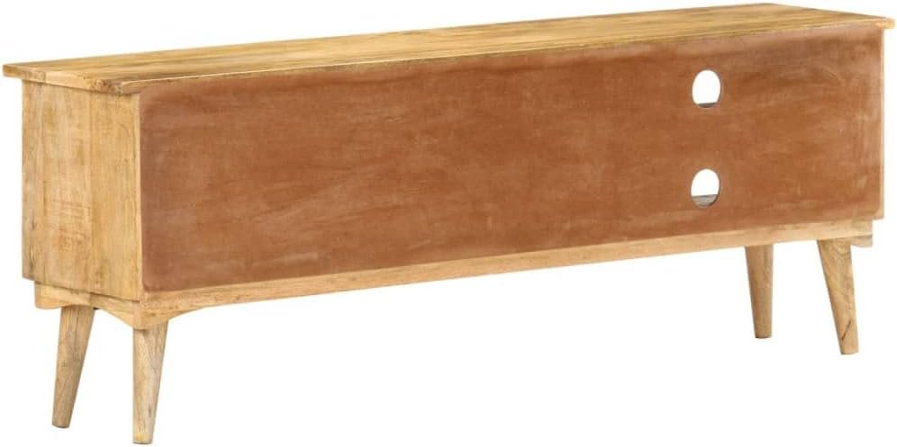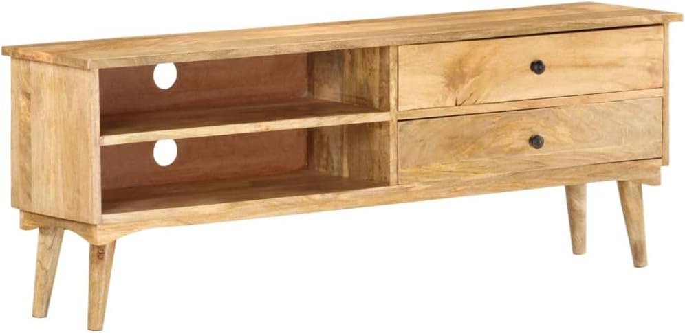 This stereo cabinet is made of solid mango wood, a tropical hardwood. It has the strength to bear the weight and also stand the wear and tear of time. Additionally, the exquisite craftsmanship and beautiful wood grains make every piece slightly different from the next. This lowboard features 2 drawers and 2 open compartments, so you can keep your DVDs, multimedia appliances, books and small essential items organized and within reach.