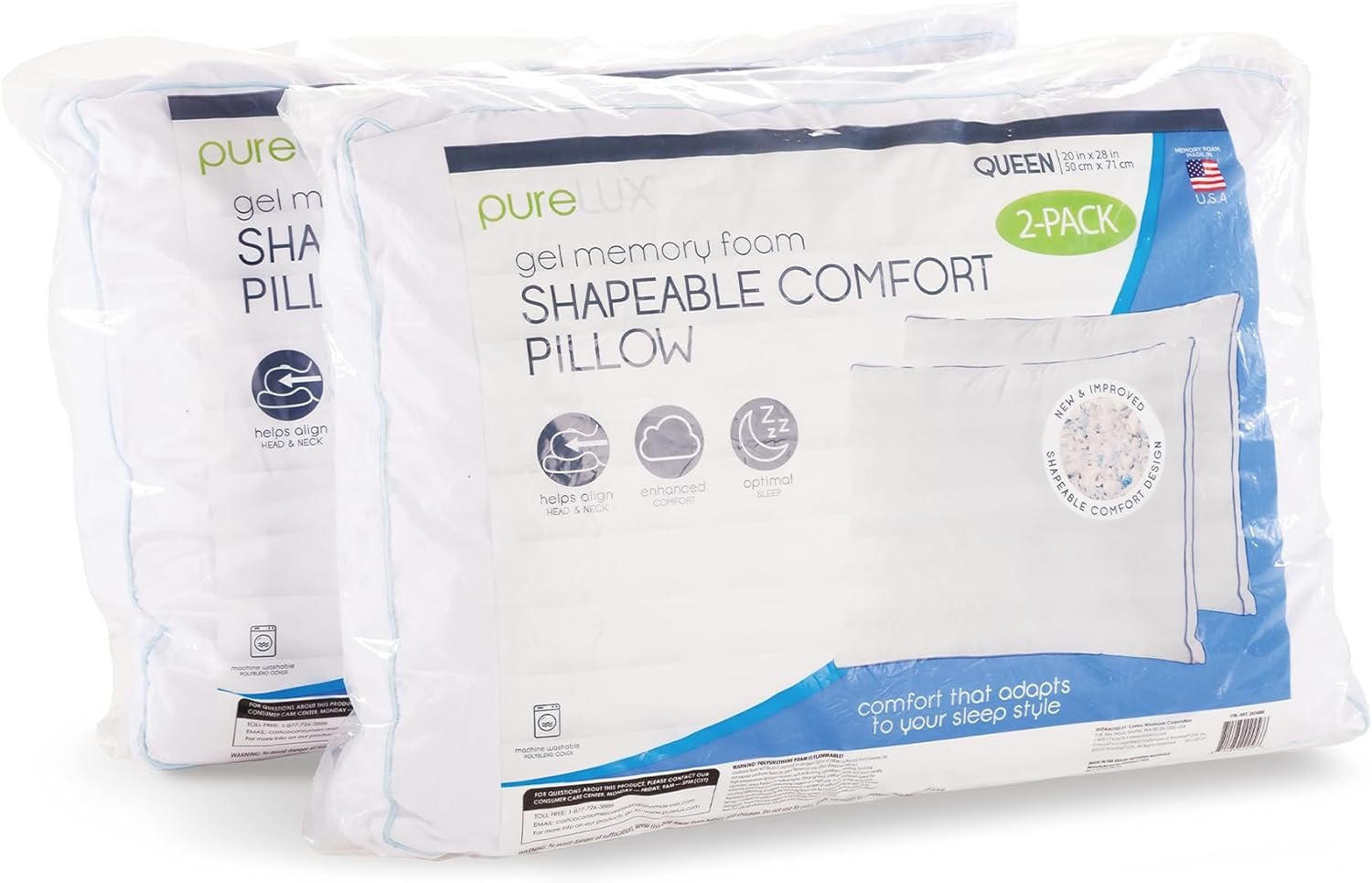 Twin Pack PureLUX Gel Memory Foam Cluster Pillows are designed to provide pressure-relieving support for the restful and deep sleep you deserve. These pillows are filled with hypoallergenic memory foam clusters. For best result, you should fluff it up before use.
