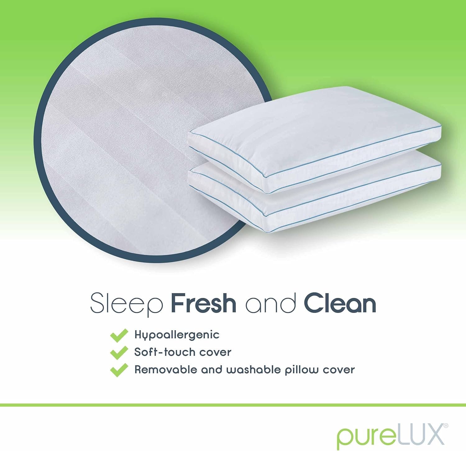 Enjoy a restful sleep with PureLUX removable and washable soft-touch cover. Pillow cuddles are better as it feels new again after every wash.