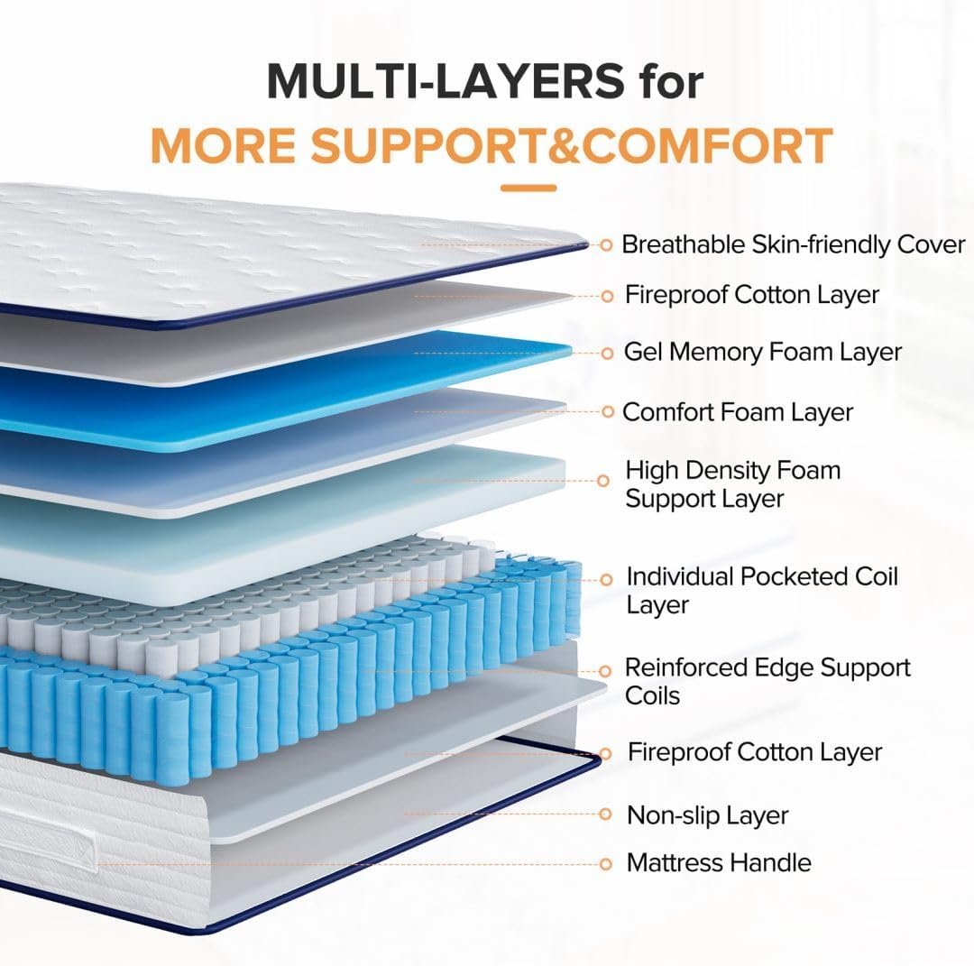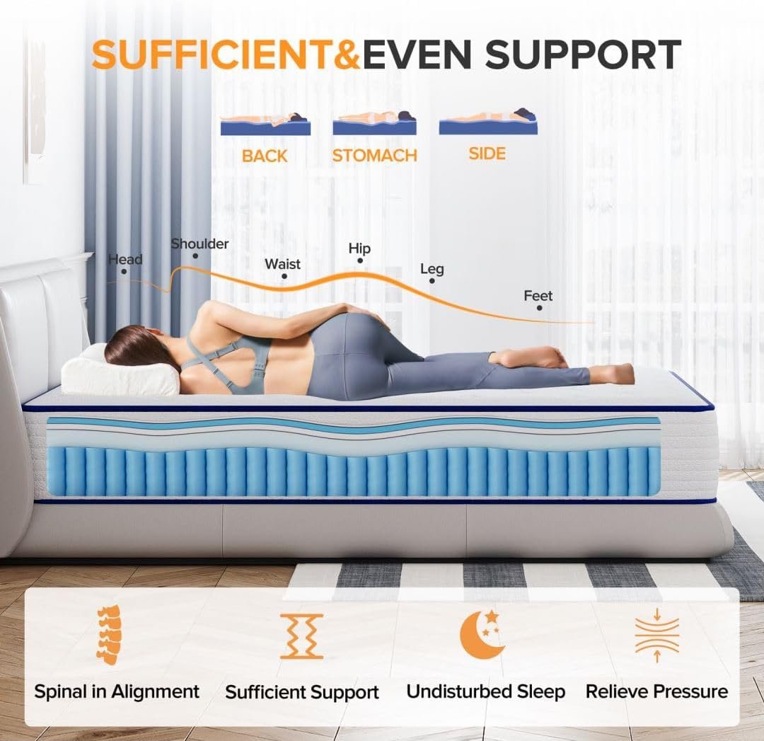🌜SUPREME SUPPORT FULL BED MATTRESS: The support system of TXO 12 inch hybrid mattress full size is made of multi-layer high density foam and individual pocketed spring, it ensures your weight be distributed from head to toe evenly and provides sufficient support according to your body curve.