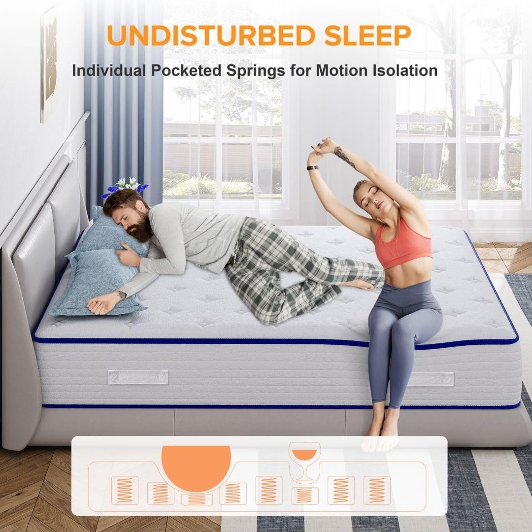 🌜 REINFORCED COILS FOR ENHANCE EDGE SUPPORT: We arrange stronger pocketed springs on the edge of full size mattress 12 inch, which can prevent hybrid mattress full to sag down and ensure a longer-lasting life span.