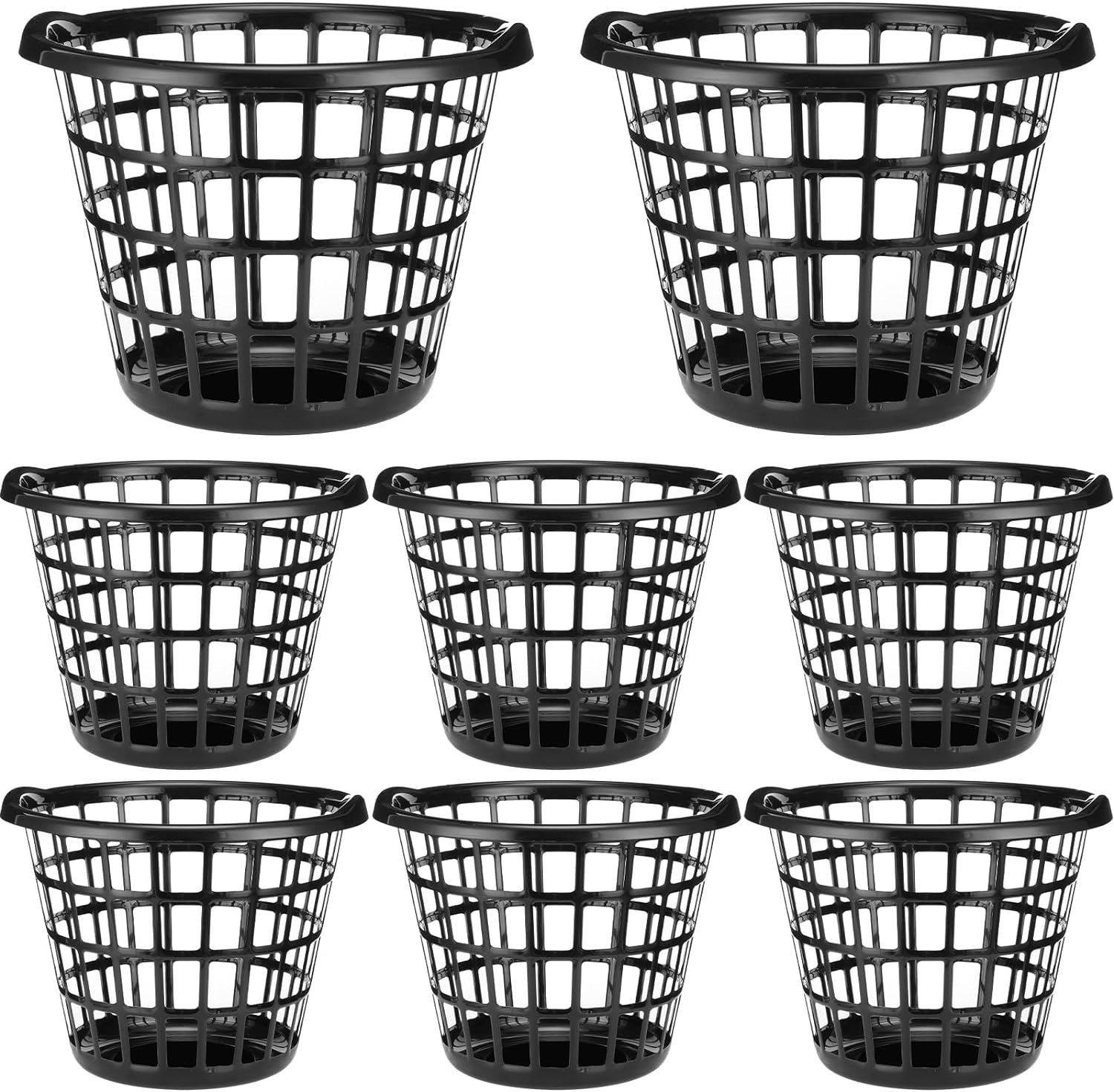 Material and Size: this plastic laundry basket plastic set contains 8 pieces of laundry hampers, measuring about 11.61”L x 11.61”W x 15.75”H; Each laundry basket is made of plastic to ensure its reliable and durable quality; The black color design is simple, which can match various home styles and make your storage space more neat and organized