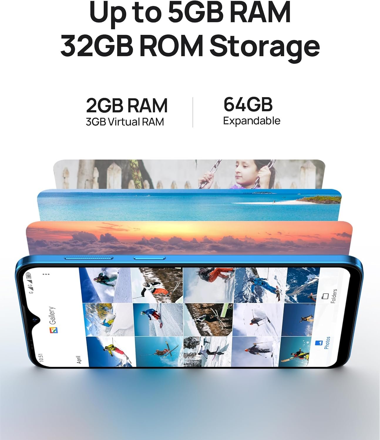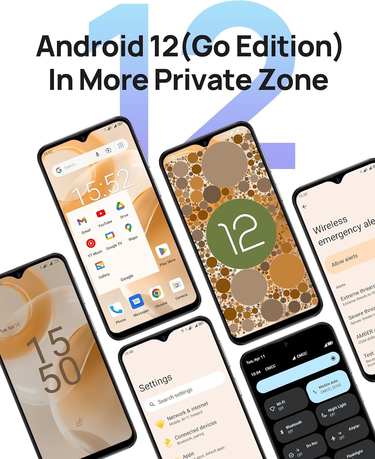 Android 12 GO unlocked cell phones, 5GB (2GB standard RAM + max.3GB virtual RAM) + 32GB ROM storage, 4000mAh battery