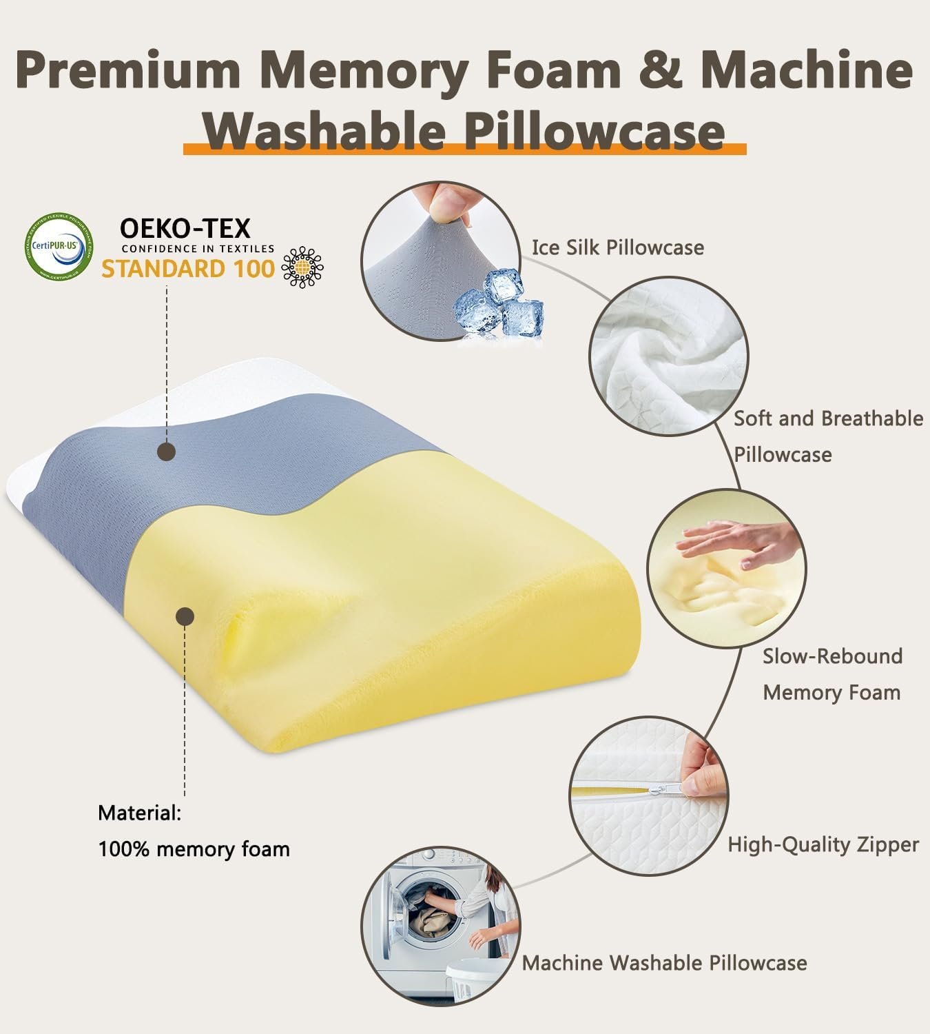 【BREATHABLE SKIN-FRIENDLY AND WASHABLE PILLOWCASE】The pillowcase is made of high quality double-layer fabric, and the center part is spliced with ice silk fabric.Features excellent moisture absorption and breath-ability,perfectly against the skin and keeps you cool all night for deep sleep.In addition,the pillowcase is removable, has a zipper and is machine washable.
