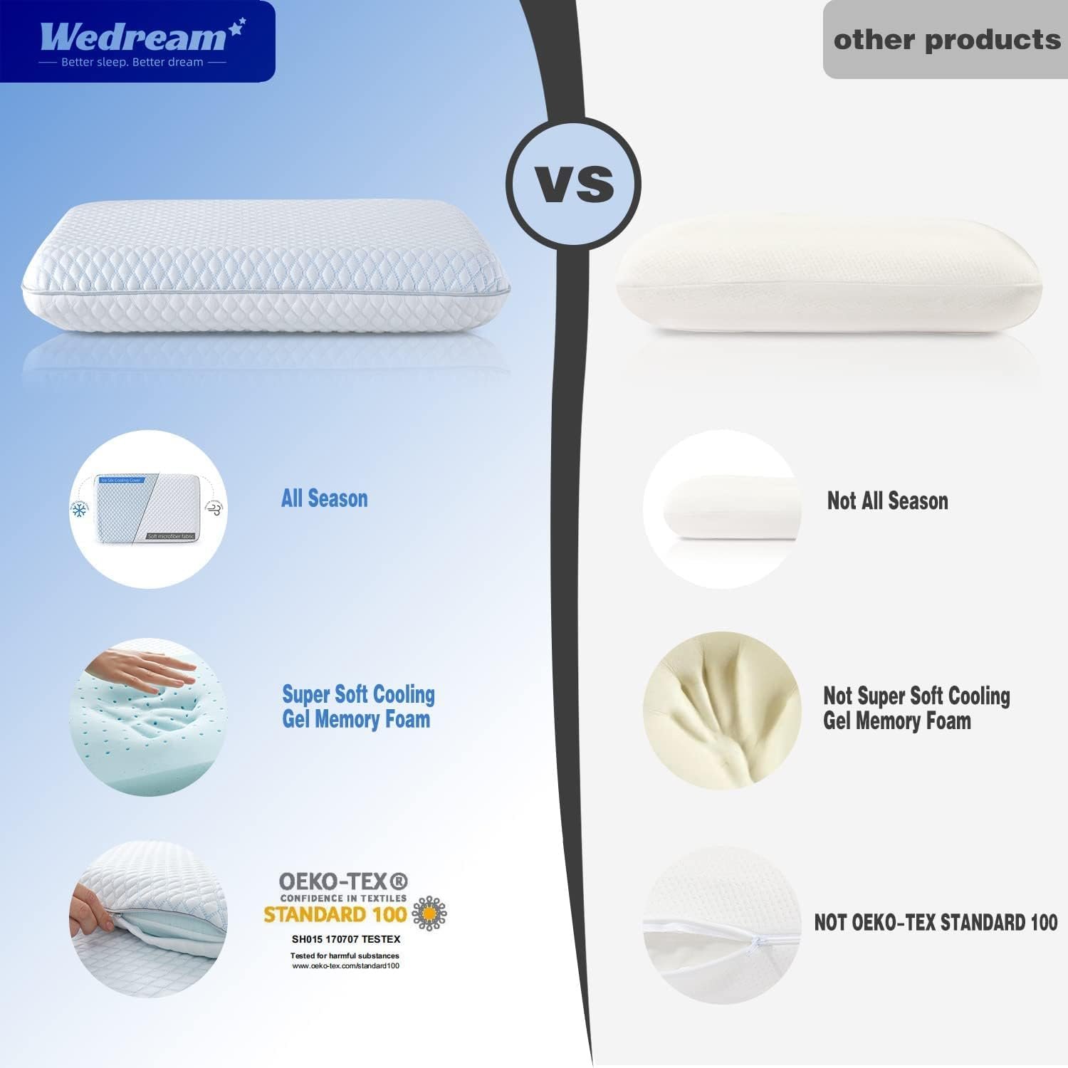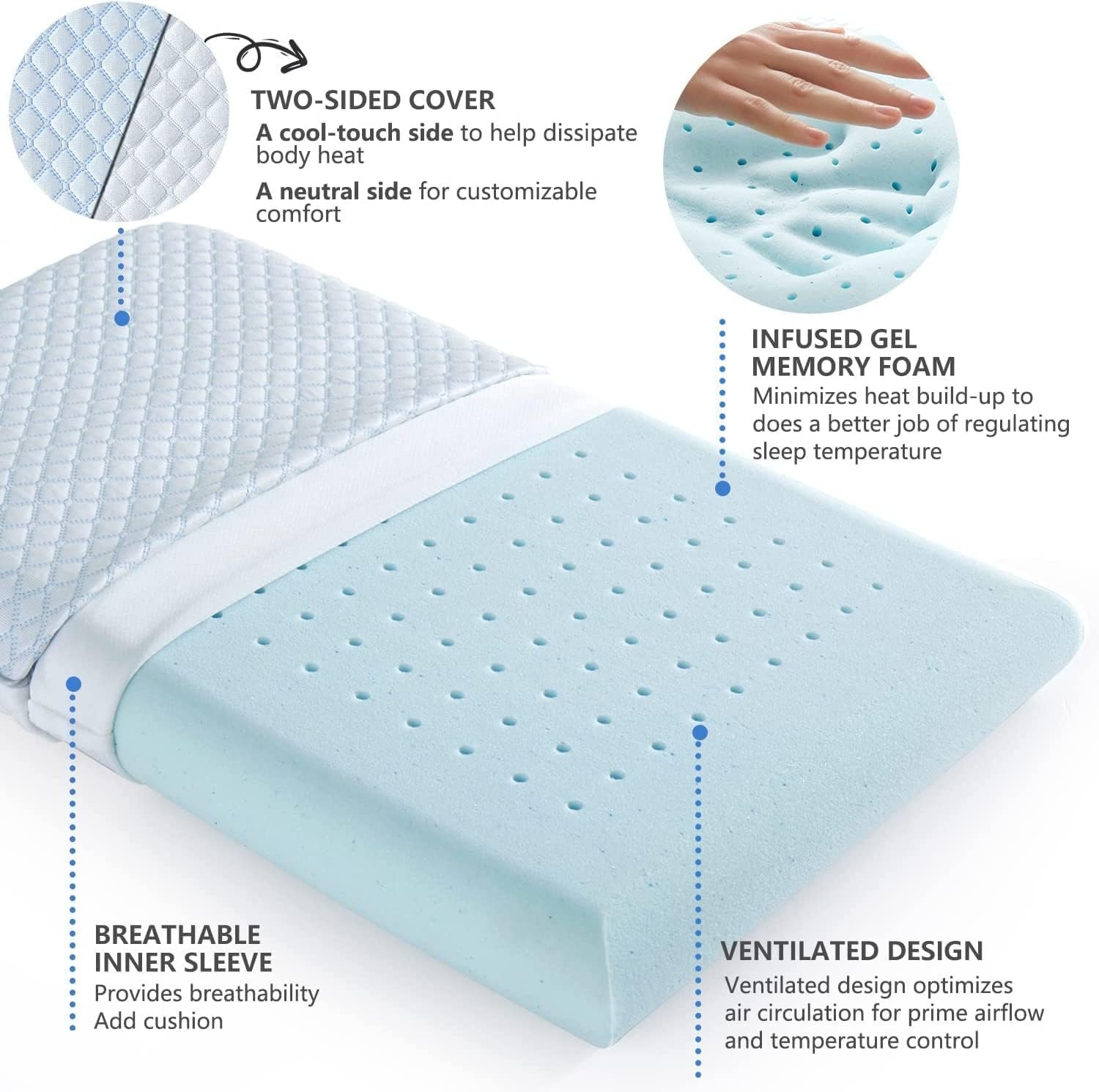 【Gel-Infused Memory Foam】Ventilated design optimizes air circulation for prime airflow and temperature control.